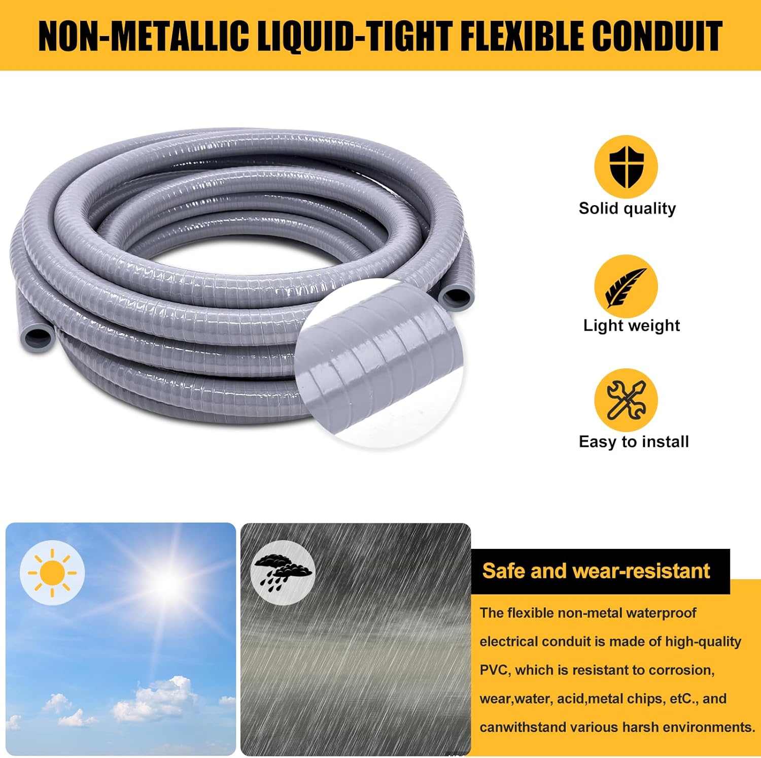 1-1/2 inch 25 Foot Liquid-Tight Conduit Kit, Flexible Non Metallic Electrical Conduit and Connector Kit, With 4 Straight and 3 Angle Fittings