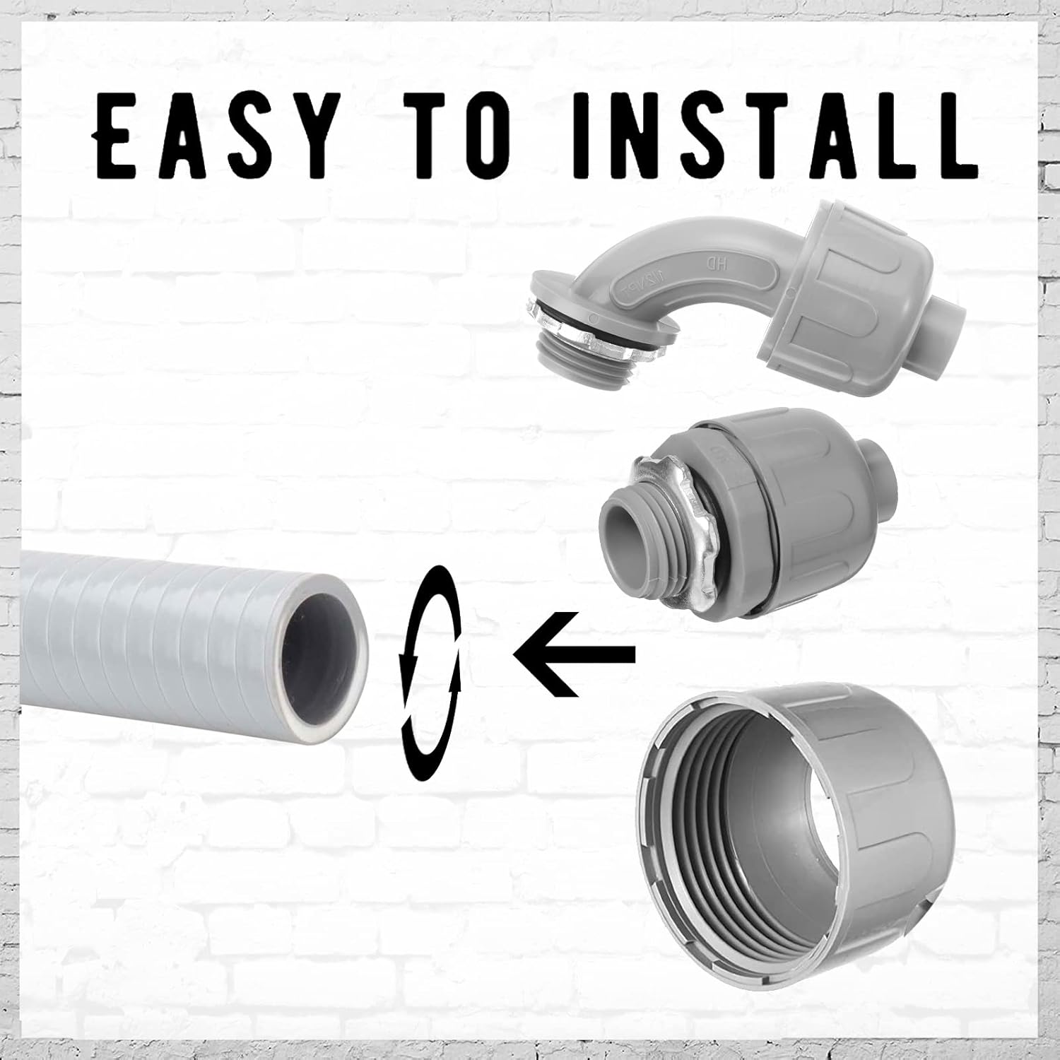Simple Connection: no additional tools are required, these conduit connectors are easy to attach to the box, merely push the pipe or pipe onto the ferrule and tighten the dome packing nut to securely fasten the connectors to the flexible conduit, simple and quick