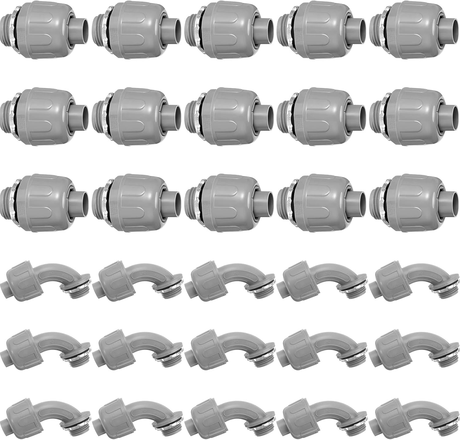 Adequate Items: you will own a total of 30 pieces flex conduit connectors, 15 pieces of 180 degrees and 15 pieces of 90 degrees, abundant quantity to meet your daily use and replacement; They are carefully packed in order to prevent breaking during transportation