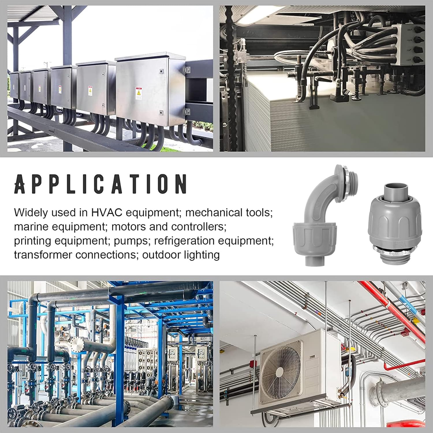 Quality Material: mainly crafted by quality PVC and iron lock plate, this liquid tight connector is not easy to break or deform, sturdy enough for long term use; The flammability rating is 94V – 2, the temperature index is 125 degrees Celsius