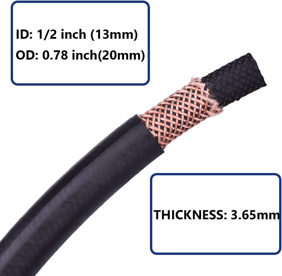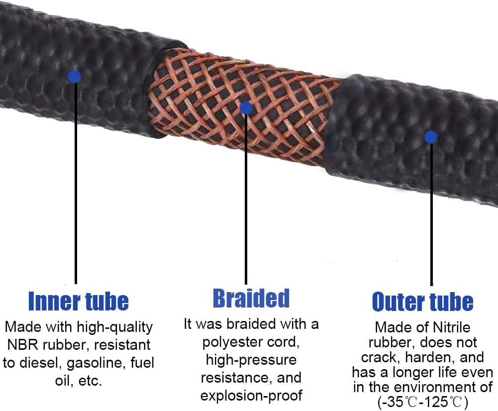 ✅ HIGH-QUALITY MATERIAL – The 1/2 fuel line is made of 3-layers. The inner and the outer pipe are made of NBR rubber and the middle reinforcing layer is braided with polyester woven. Wall thickness is 3.65mm. Oil resistant, cold-resistant, and ethanol tolerance.