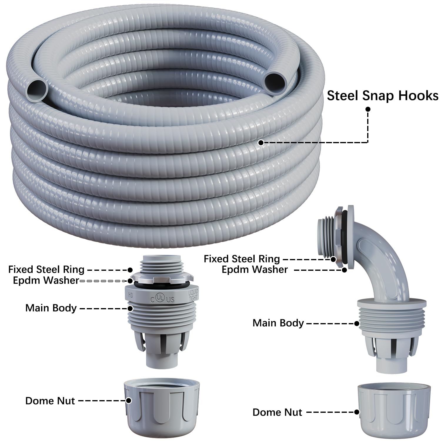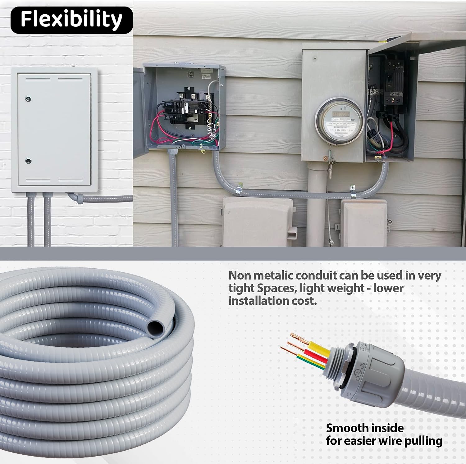 Premium Liquid-Tight Conduit The liquid conduits are made of premium pvc material, the flexible non metallic features strong ability of protection same as metal conduit, and more flexible and light.