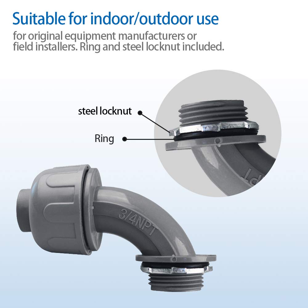 HIGH QUALITY – Liquid-Tight Conduit and Connectorare resistant to salt water, weak acids, gasoline, alcohol, oil, grease and common solvents;resists abuse, pull and crushing; outdoor, sunlight resistant, direct burial.