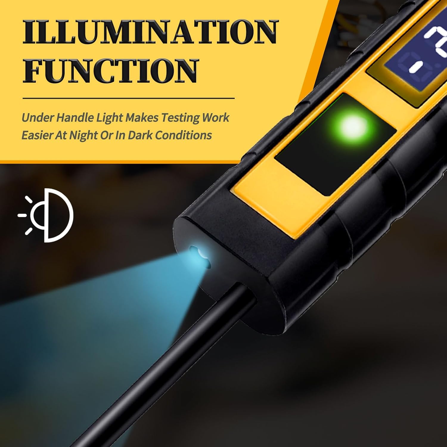 LCD BACKLIT DIGITAL DISPLAY & LED INDICATOR: The circuit tester combines an LCD digital backlight display with an LED red/green indicator light design, making it easier to read the voltage values of the screen and distinguish between positive and negative electrodes.