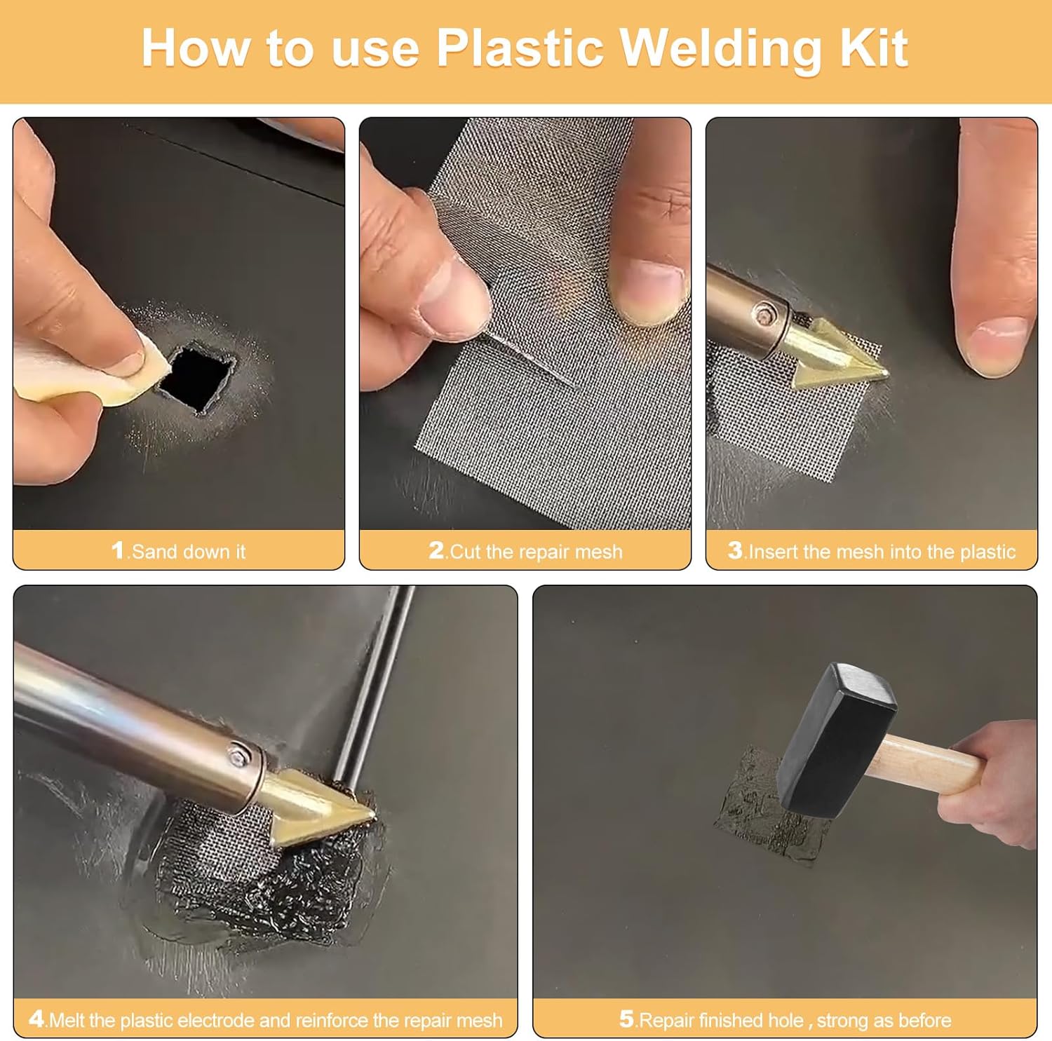 【Wide Application】The effect is better when used with plastic welding rods, wire mesh, etc. The plastic welding tip are capable of generating high heat, penetrating wire mesh, and reaching temperatures from 390°F to 896°F within a couple of minutes. It usually used to repair and smooth plastic bumpers, plastic casings, brackets, etc.
