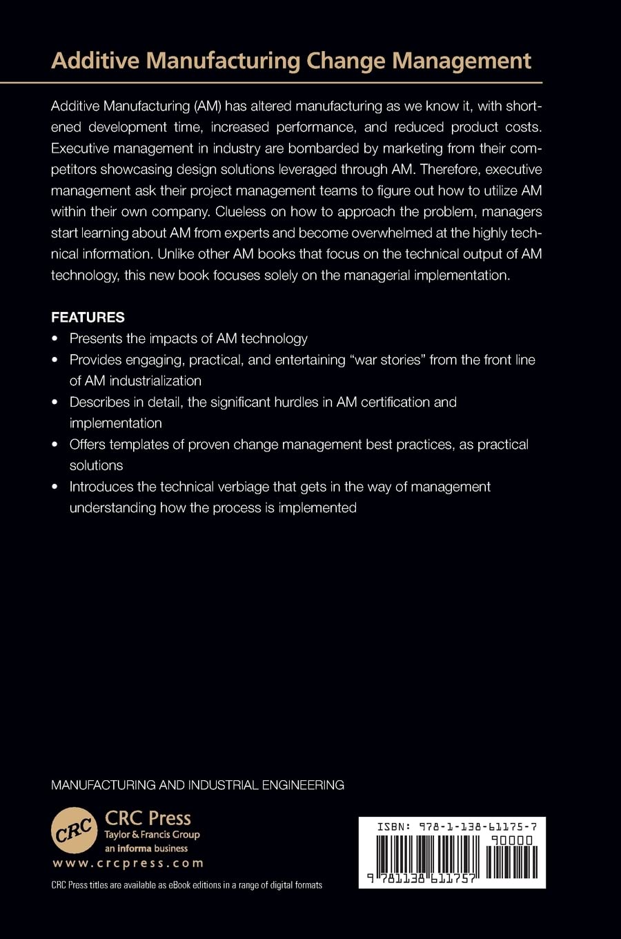 Additive Manufacturing (AM) has altered manufacturing as we know it, with shortened development time, increased performance, and reduced product costs. Executive management in industry are bombarded by marketing from their competitors showcasing design solutions leveraged through AM. Therefore, executive management ask their project management teams to figure out how to utilize AM within their own company. Clueless on how to approach the problem, managers start learning about AM from experts and become overwhelmed at the highly technical information. Unlike other AM books that focus on the technical output of AM technology, this new book focuses solely on the managerial implementation.