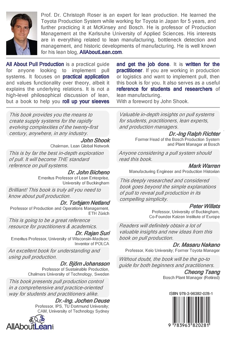 In this book you will find many techniques and tools that will help you reconfigure your supply chain operations. But more importantly, by exploring numerous approaches and methods, this book will challenge you to rethink your strategy, to reconsider what your supply system needs to accomplish and why. This book provides you the means to create supply systems for the rapidly evolving complexities of the twenty-first century, anywhere, in any industry. John Shook, Chairman, Lean Global NetworkThis is by far the best in-depth exploration of pull. It is amazingly comprehensive, including warnings, common errors, and applicability of various pull systems. I am sure that it will become THE standard reference book on pull systems. Dr. John Bicheno, Emeritus Professor of Lean Enterprise, University of BuckinghamProf. Roser is the go-to source for anything about lean. With this comprehensive book on pull production he has written an authoritative work. Highly recommended for anyone interested in getting to the heart of Toyota’s pull principle. Dr. Torbjørn Netland, Professor of Production and Operations Management, ETH ZürichThis book explains pull production very well and in an excellent style. The book definitely demystifies pull. Without doubt, the book will be the go-to guide for both beginners and experienced practitioners. Cheong Tsang, Bosch Plant Manager (Retired)