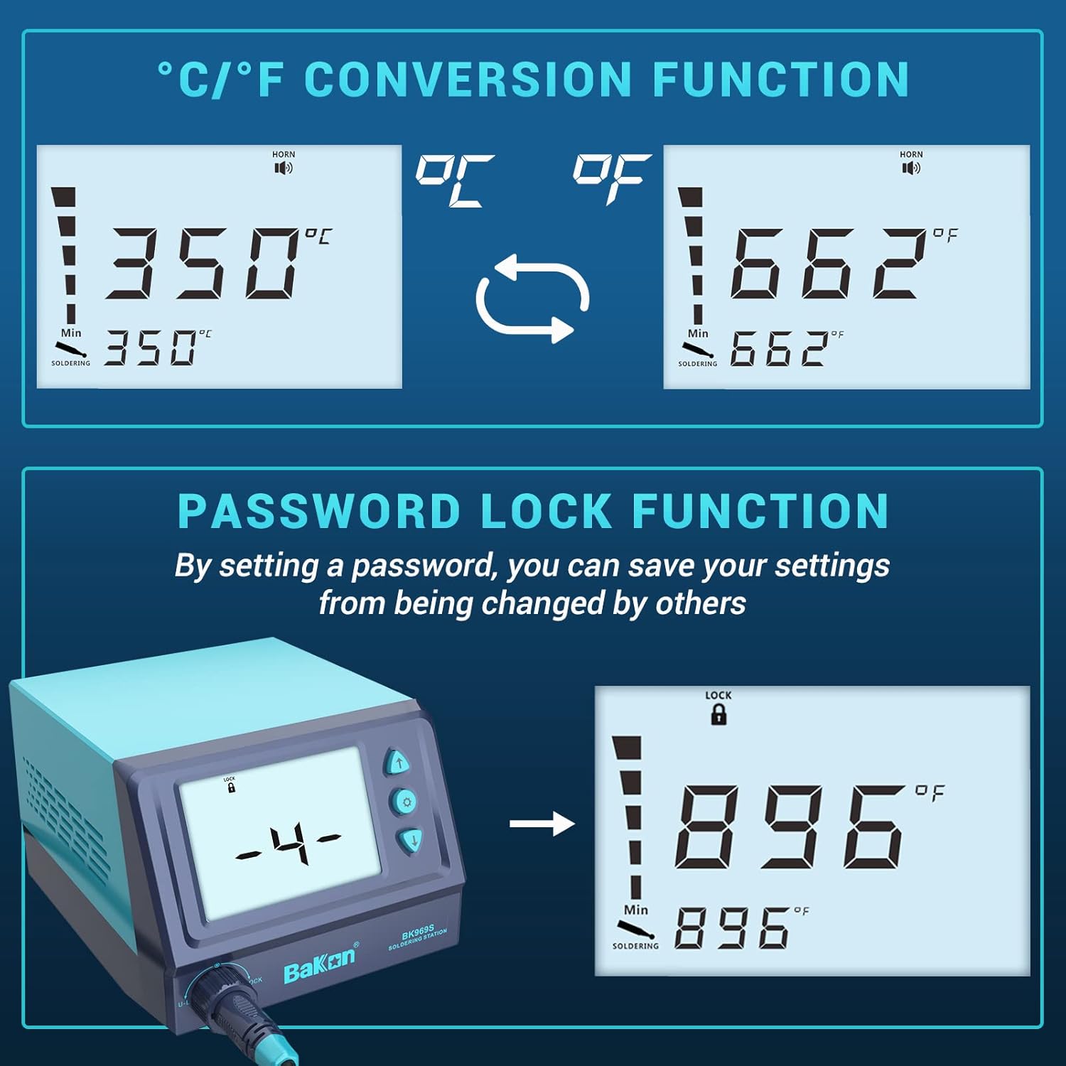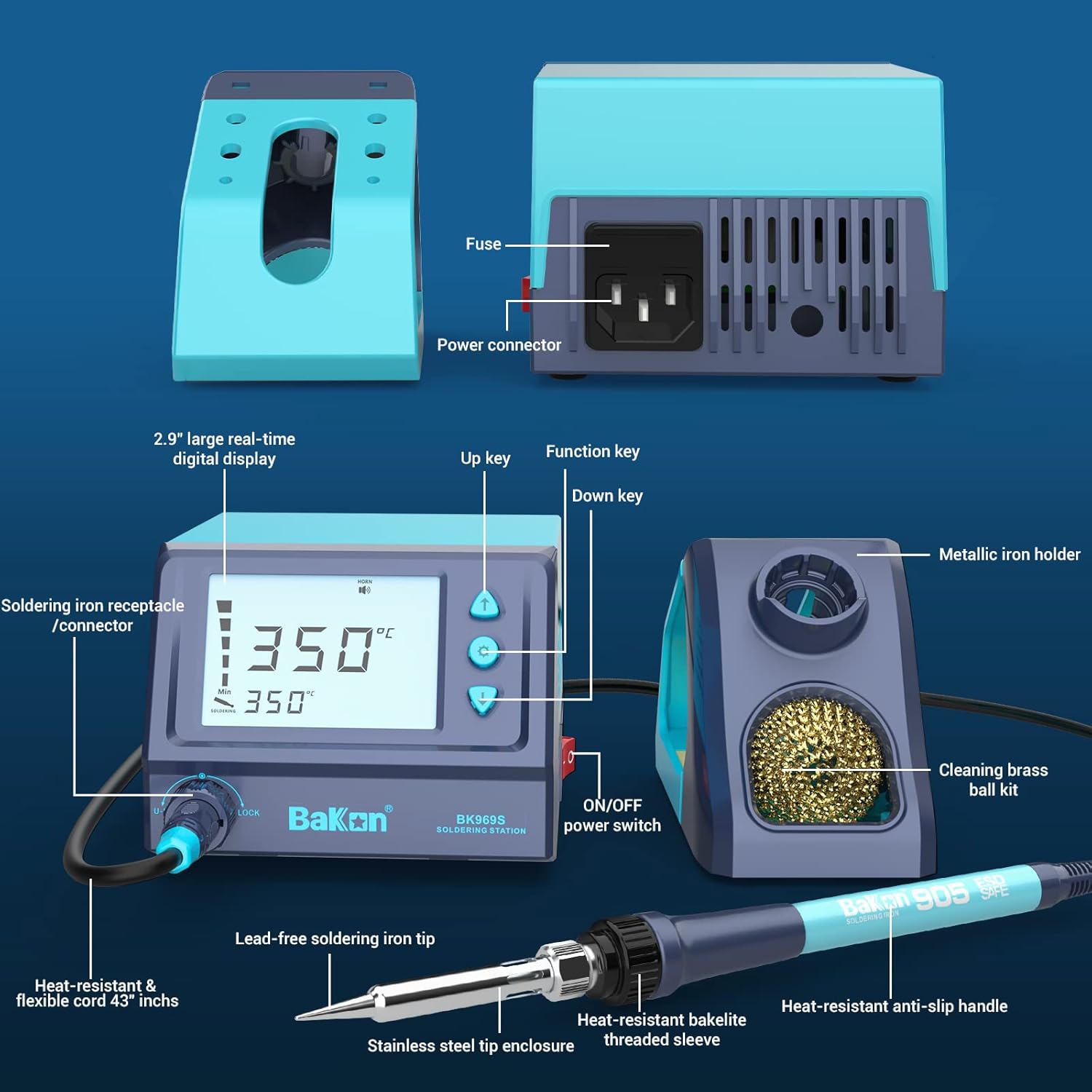 【Quality Service】Our soldering stations Perfect for beginners and expert users, the BAKON 969S soldering iron kit can be used for DIY hobbies, home appliance repair, factory production, SOP / DIP / SOIC welding etc.provide an optimal experience for your work. Please don’t hesitate to contact us if have any question about our product or the instruction. We will reply to you no more than 24 hours.BAKON will be provided for a 1-year warranty after-sales and lifetime technical support, and a 30-day full returnd.