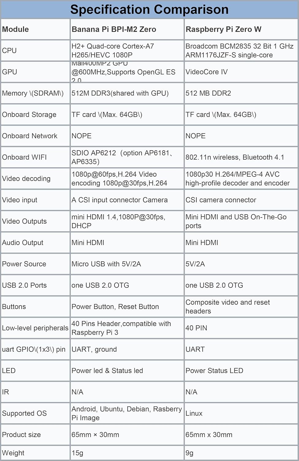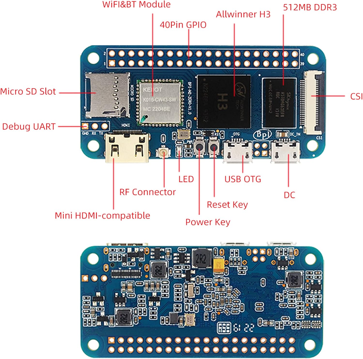[Allwinner H3 Chip] Banana Pi M2 Zero is an ultra compact single board computer measuring only 60mm*30mm.It uses an Allwinner H3 quad-core Cortex A7 processor, with 512MB of RAM.Same size as Raspberry Pi Zero W port.