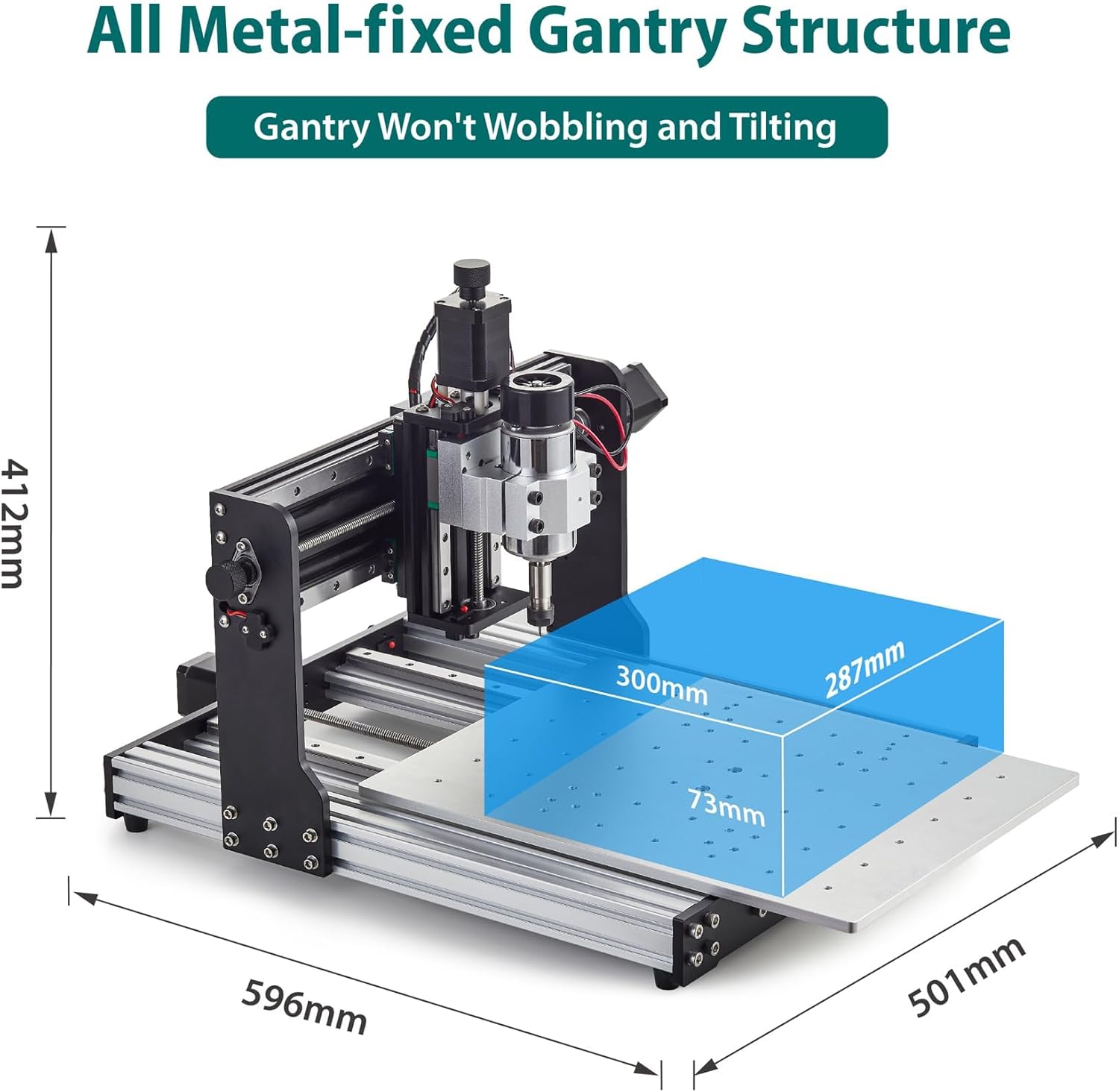 【Increased Precision and Stability】 The XYZ axes of CNC 3030 Evo Pro feature dual linear guide rails and T8 lead screws, fixed gantry structure that significantly reduces errors caused by shaking and tilting. The rigidity is stronger, enabling the machine to cut metal materials like steel, aluminum, and copper, wood and acrylic etc.