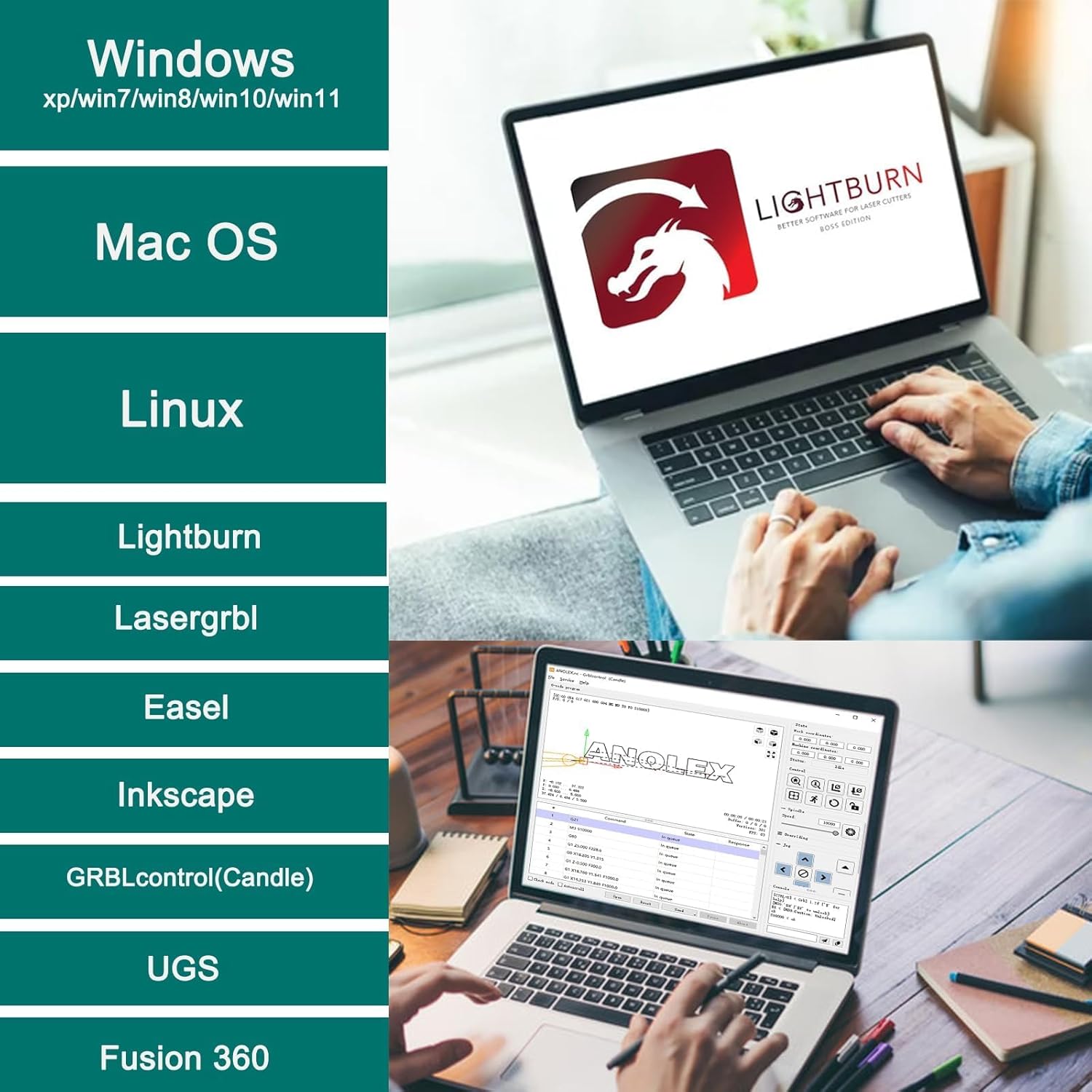 Support Window/Mac/Linux, the control board is based on grbl 1.1h firmware, so it is basically compatible with grbl software, including control software, laser software, and CAM software.