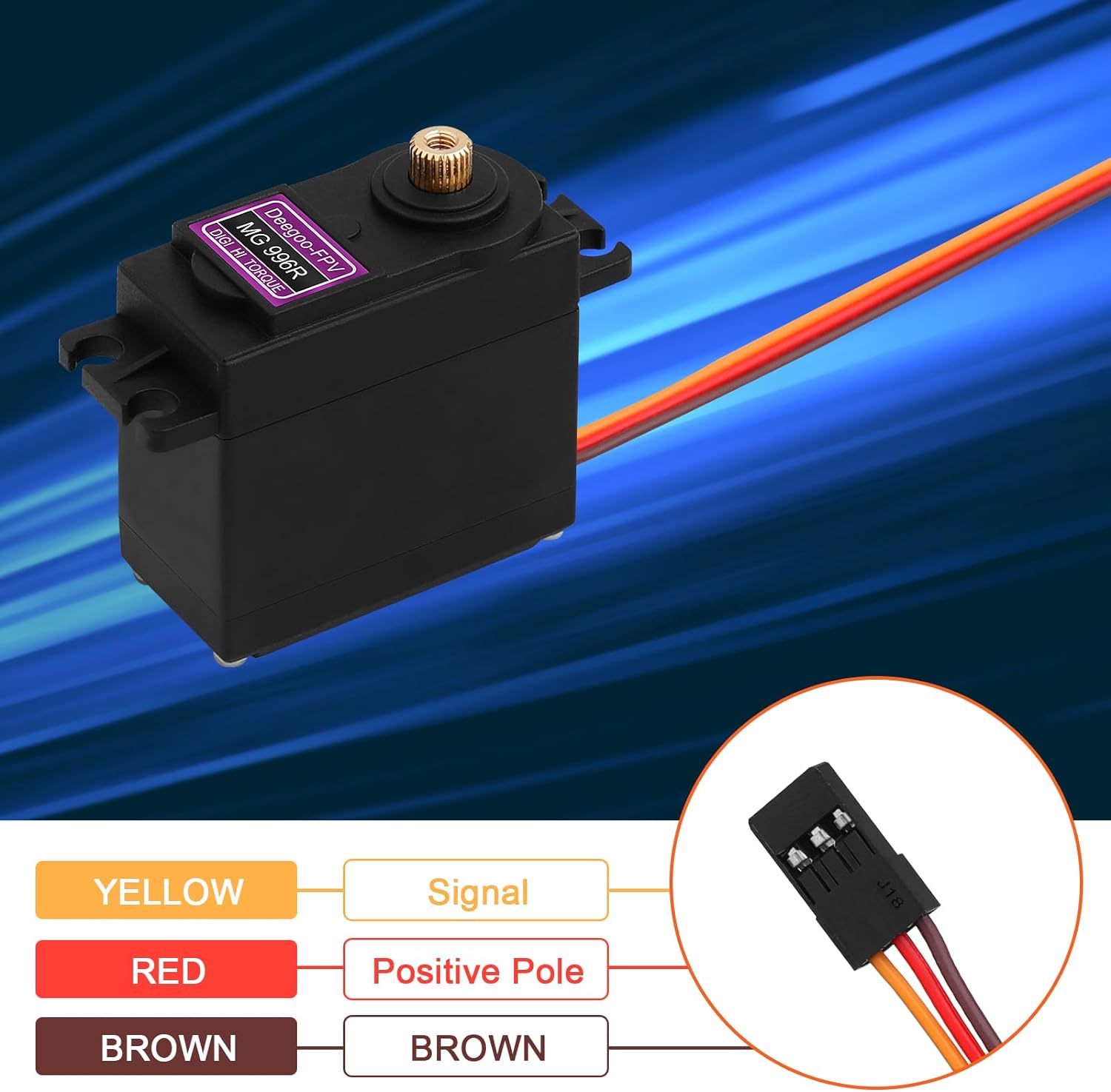 The MG996R model compliant with most standard receiver connector,for Futaba, Hitec, Sanwa, GWS etc.