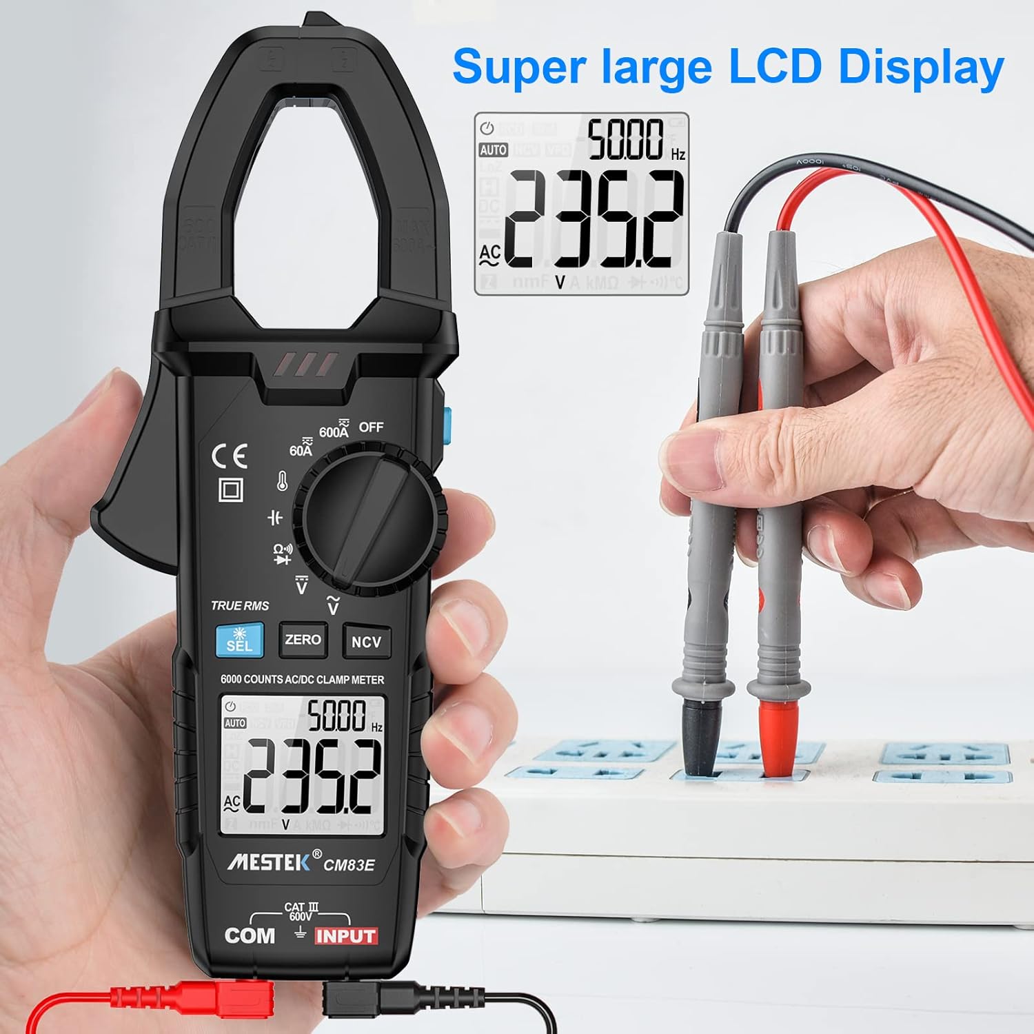 True-RMS AC DC Clamp Meter: MESTEK clamp meter can accurately measures max 600A AC/DC current, 600V AC/DC voltage, resistance, capacitance, continuity, temperature, diode; A useful troubleshooting tool that will help you solve electrical problems in the car, industrial or at home quickly and safely, perfect for electricians, DIY, professionals, etc