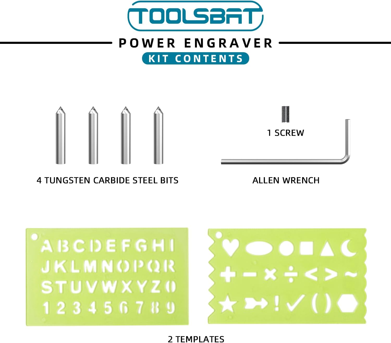 Enhanced Engraver with 4 Tungsten Carbide Tips: The TOOLSBAT engraver offers flexible engraving on multiple materials. Achieve precise and intricate results using our durable tungsten carbide tips. Enjoy a convenient engraving experience with the included 4 tips, eliminating the need for additional accessory purchases.