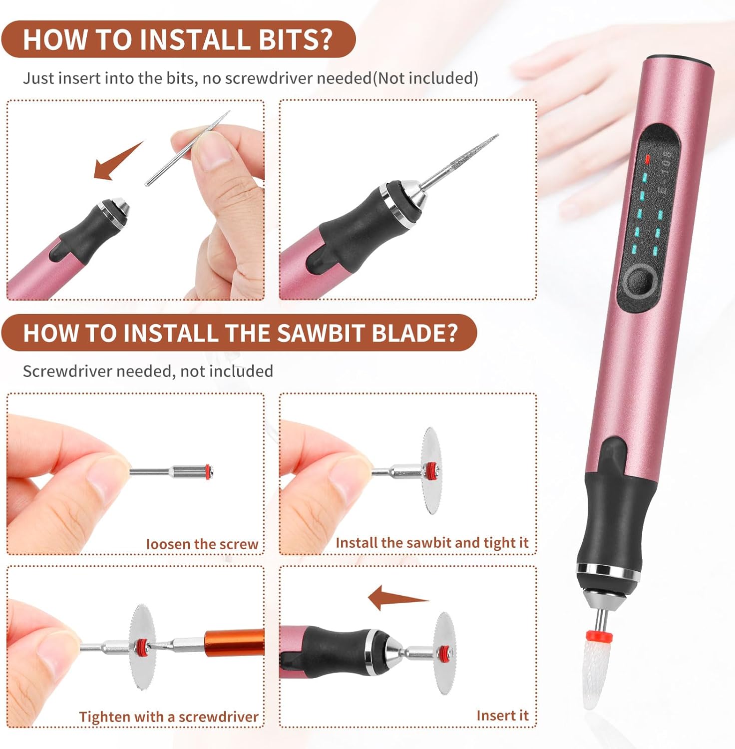 Package Include: 1 X Engraving pen 1 X USB charging cable 1 X Polish bit 2 X Drill bits 3 X Saw bits & 1connecting stick 30 X Engraving bits 16 X Stencils