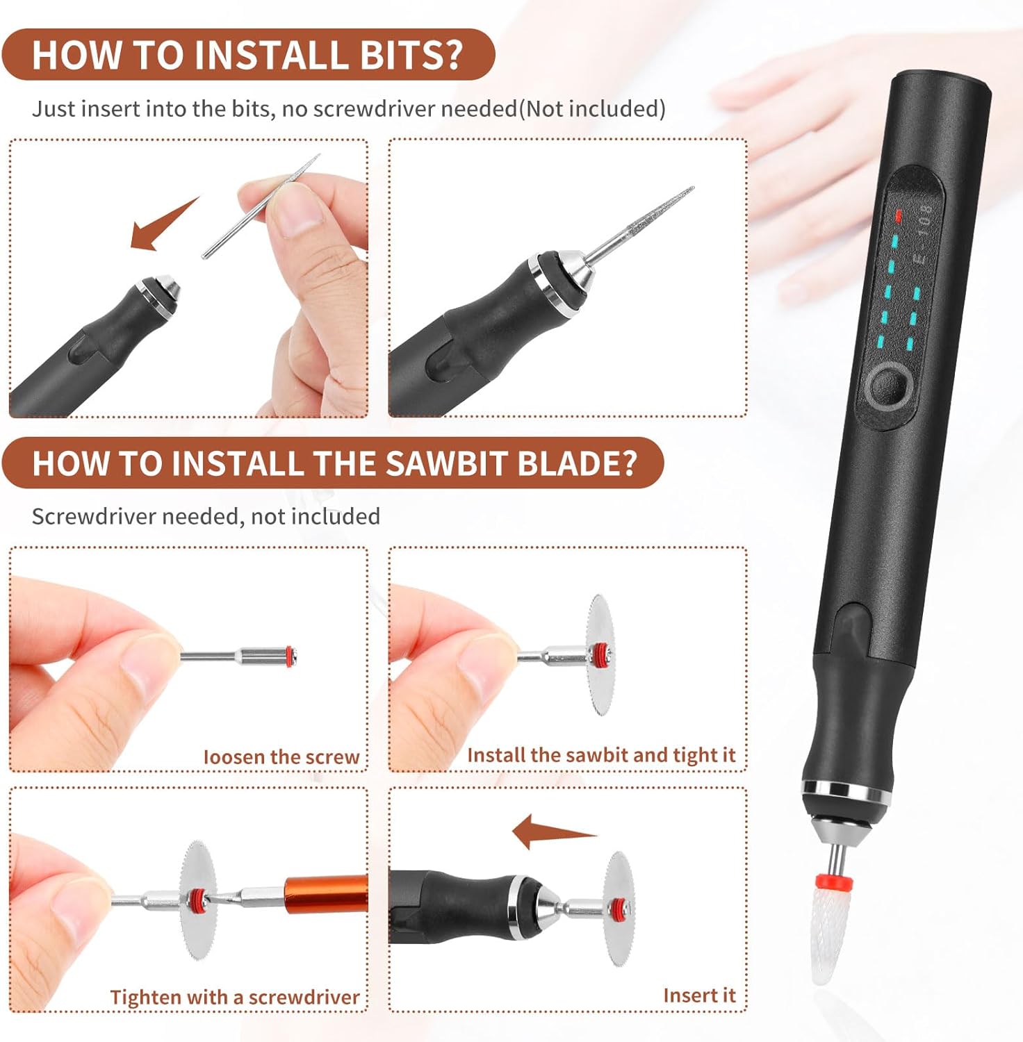 Get Everything You Need to Start:Master the art of engraving with our complete kit. You’ll receive an engraving pen, a USB Type-C cable for charging, a robust 30-piece bit set for various techniques, essential tool bits (polish, drill, saw), a connecting stick, and 5 guiding stencils