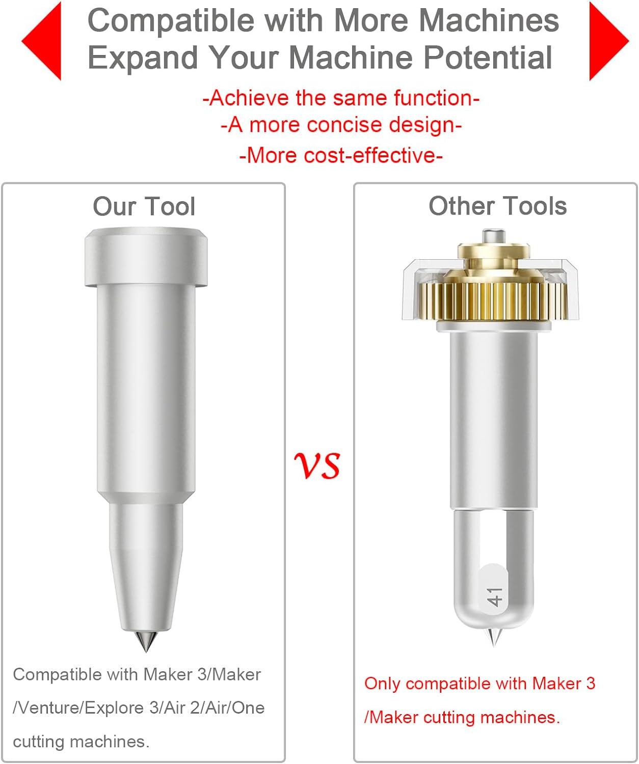 Compared with the 41# engraving tip, our engraving tool has stronger compatibility, this engraving tool works for all cricut maker and explore series machines. With this tool, you can greatly expand the functions of your machine.