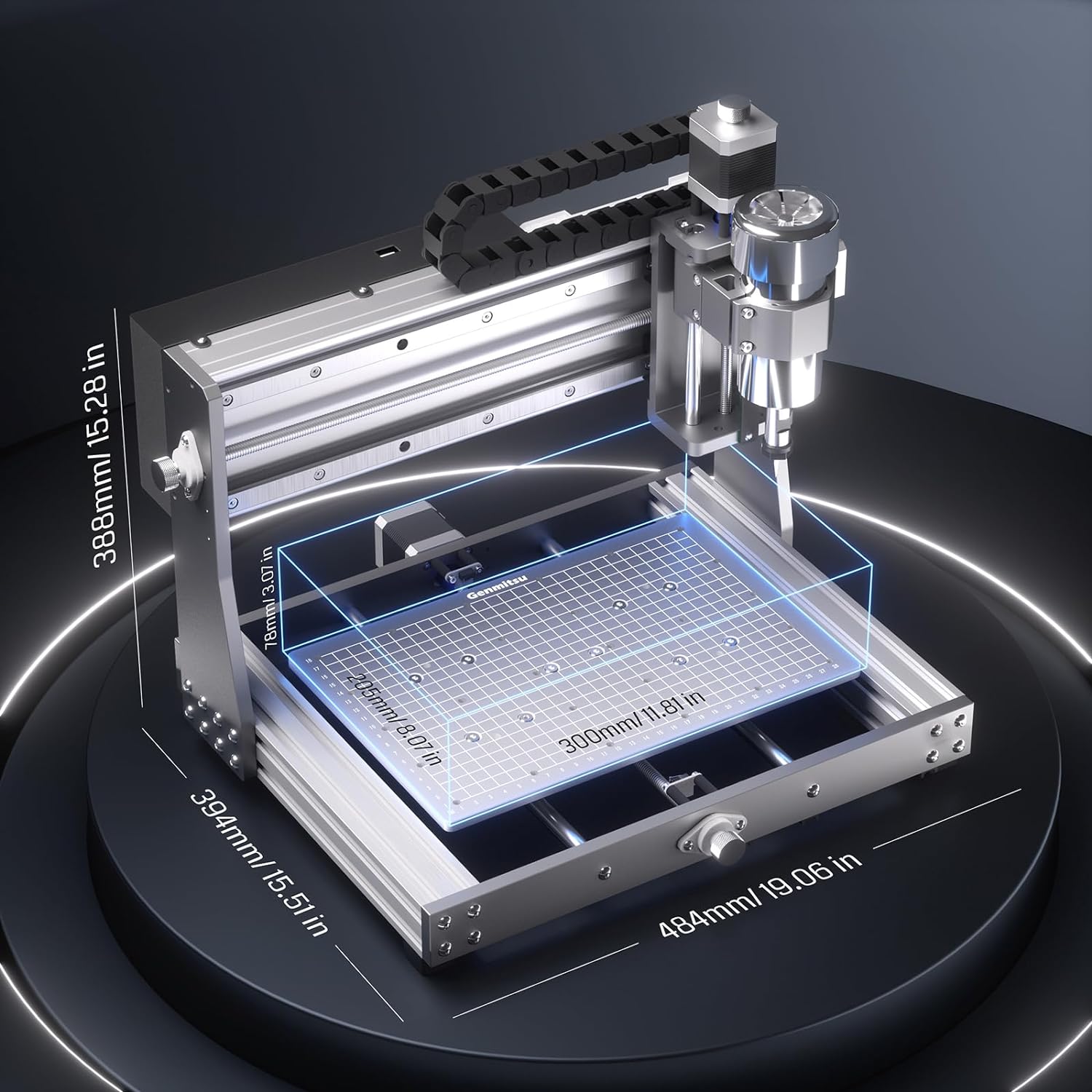 Convenient Setup: Optimized layout with the power supply conveniently installed on the backplate of the X-axis, maximizing workspace utilization. A pre-assembled XZ Axis Gantry module and Base Assembly dramatically saves you time. Pre-organized wiring and a pre-assembled drag chain save time and effort, requiring only final connections to the ports for a hassle-free CNC experience.