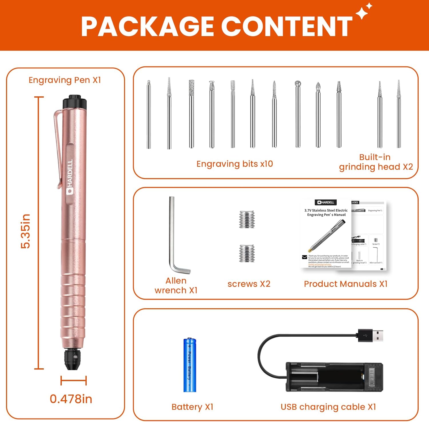 [ERGONOMIC DESIGN]-The engraving pen is like a writing pen, making engraving as easy as writing. It is comfortable to hold, small and flexible, perfect for DIY projects, and easy to carry. High-precision, precise pure copper chuck design.