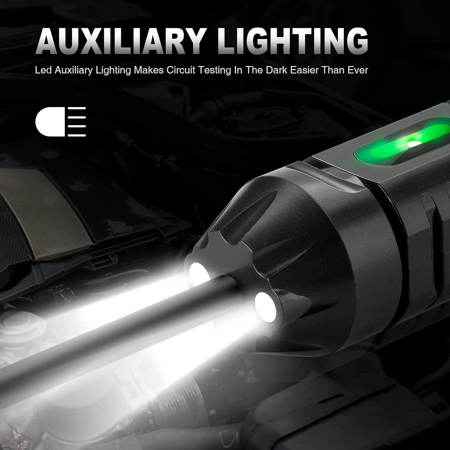 【LED DIGITAL DISPLAY & AUXILIARY LIGHTING】 Heavy Duty auto circuit light tester with LED digital display, voltage reading resolution to .1V with high accuracy to ±0.2V, clear&visible digital readouts for day and night. When measuring, there are two lighting LED beads will illuminate the measured circuit area, making night work more convenient than ever.