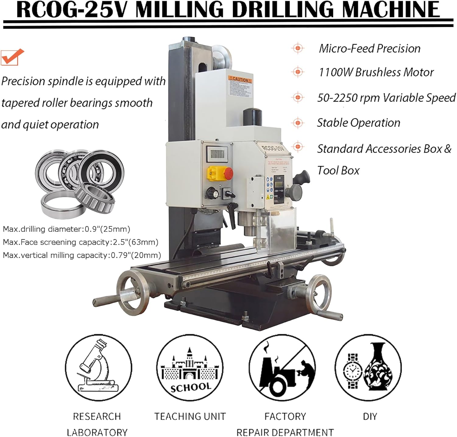 ๐ฎ๐ง๐๐ญ๐ข๐จ๐ง๐๐ฅ๐ข๐ญ๐ฒใThe RCOG-25V multi-functional drilling and milling machine is designed to efficiently handle both drilling and milling operations. It caters to precision parts processing, sample machining, and modeling needs, making it an essential tool for a wide range of applications in metal,wood,plastic,and more.