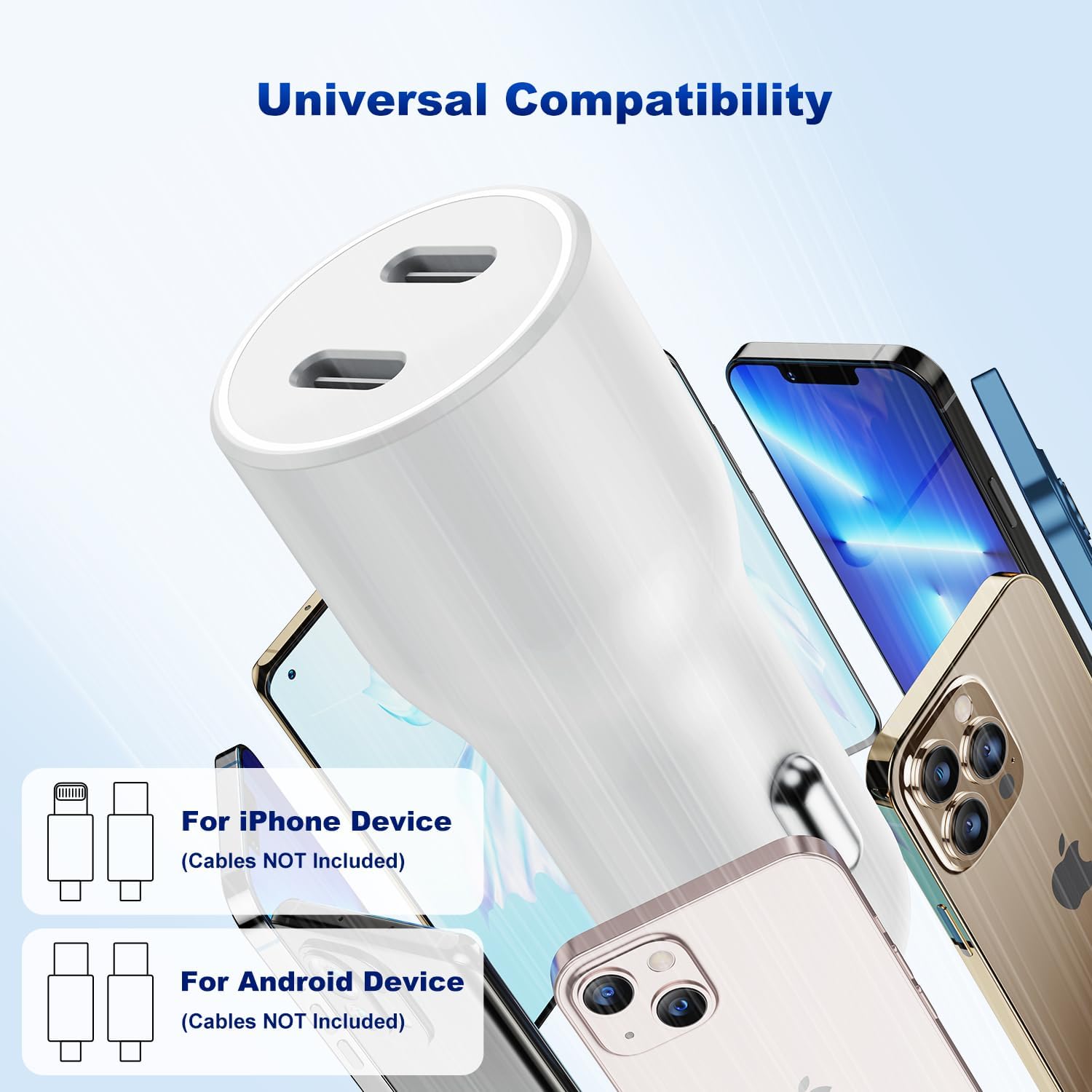 【Safety Efficient & Fast Charging]】: iPhone USB C Car Charger automatically recognizes dual devices, frees up more space, and provides you with a comfortable driving experience. Built-in multi-protection system, avoiding from over-voltage, over-charge, over-heat, etc., charge your iPhone/iPad device fast, safely and steadily.