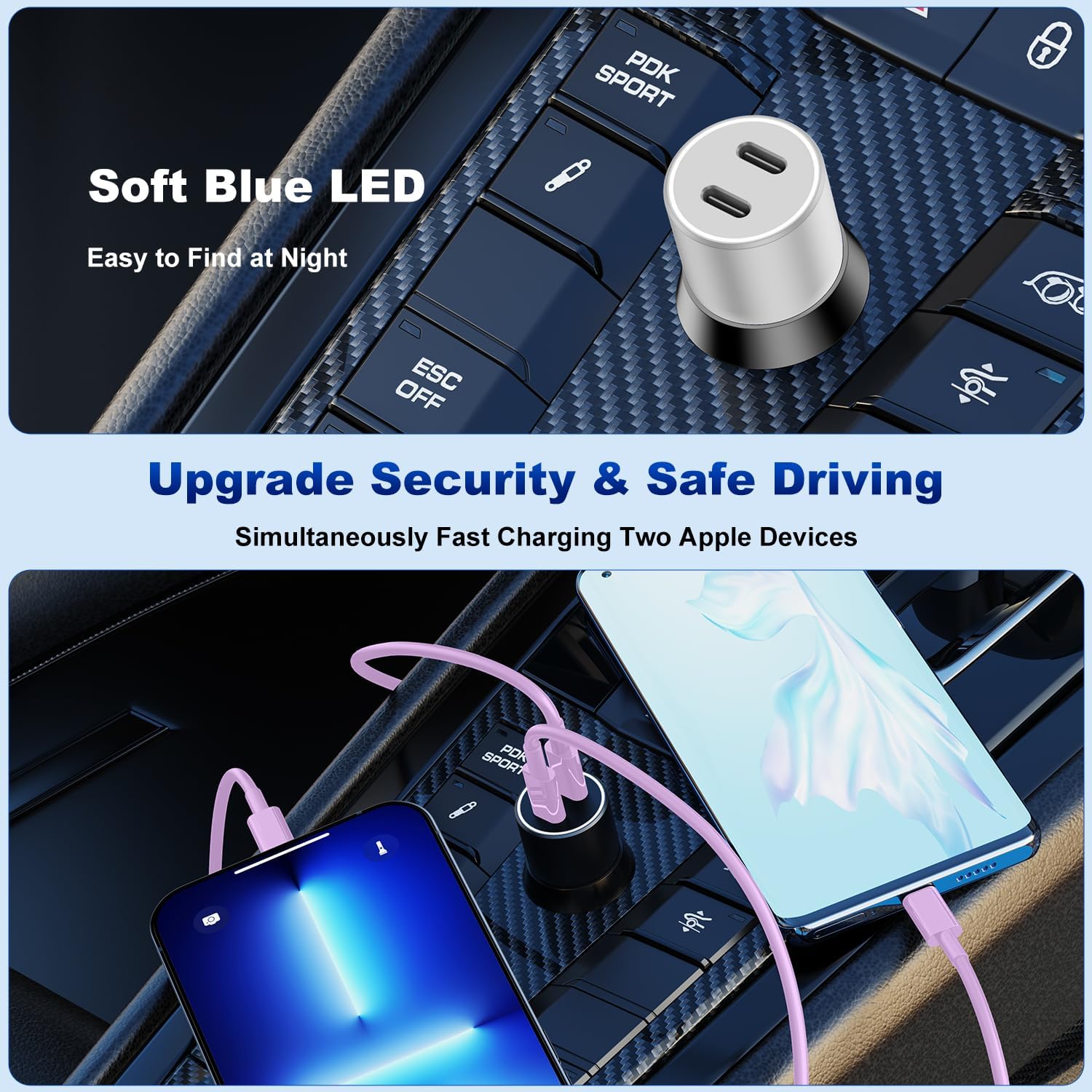 45W Dual-Port iPhone Fast Car Charger with 2Pack USB C to Lightning Cable