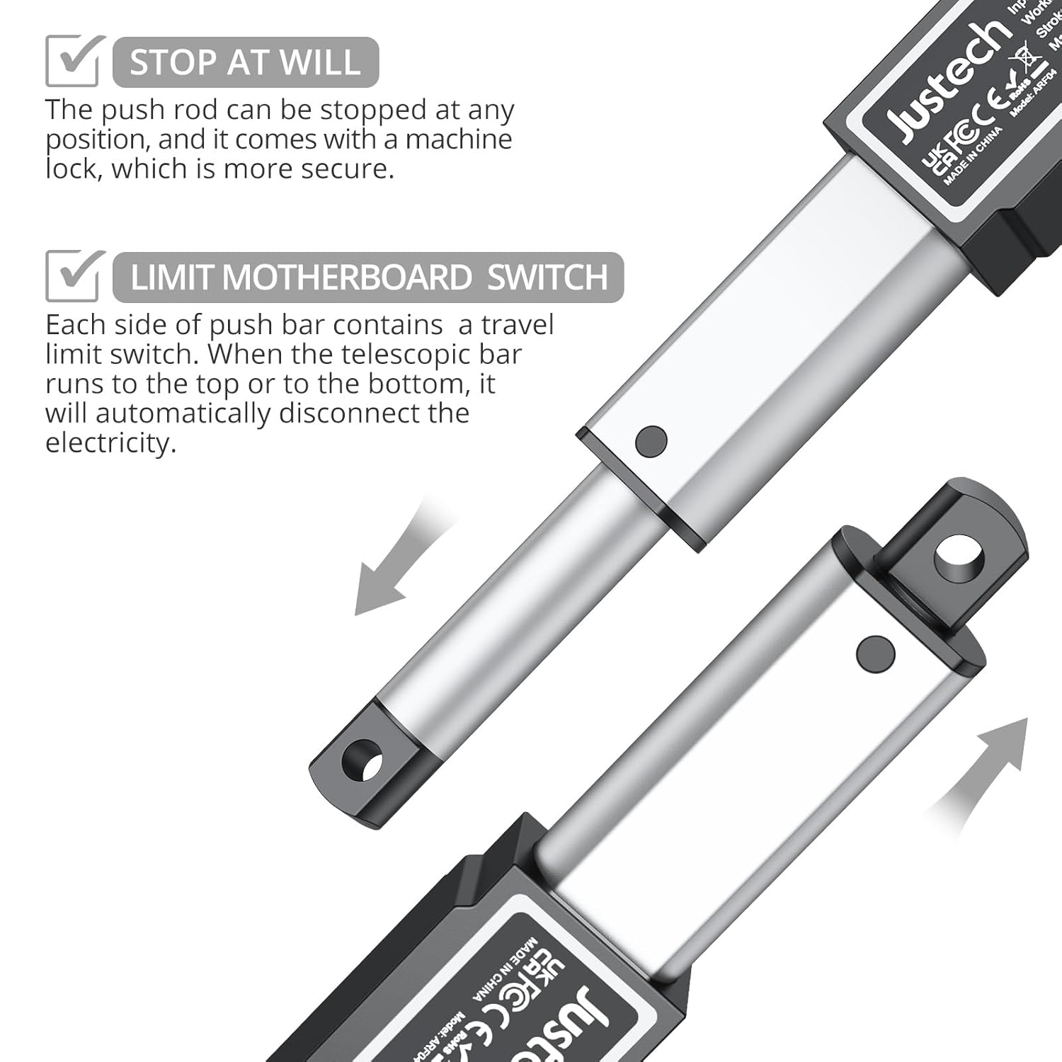 【ENHANCED PRODUCT FEATURES】This linear actuator is designed with multiple safety features, including overcurrent protection, short circuit protection, overload protection, and overvoltage protection. These features ensure safe and reliable operation, protecting both the actuator and connected devices. The actuator also incorporates built-in limit switches, allowing you to stop it at any desired position. Its self-locking function further enhances its usability and convenience