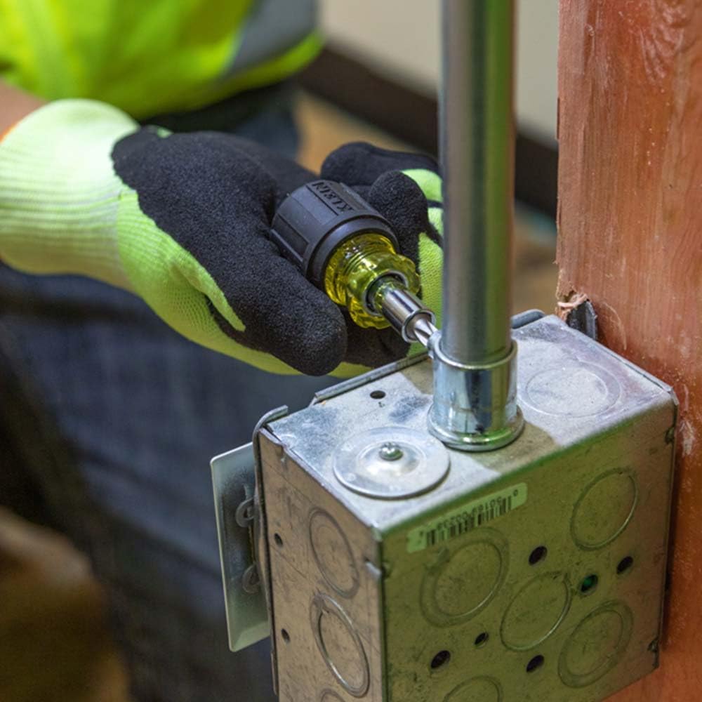 Klein’s Multi-Bit Stubby screwdriver is small to allow easy access to tight work spaces. Cushion-Grip handles provide greater torque and comfort. The heat-treated bits are industrial strength for the ultimate in durability and performance. For more than 160 years, Klein Tools has manufactured premium-quality, professional-grade hand tools that deliver the performance, durability and precision needed to get the job done right. Our family of engineers, workers and craftsman continue to put six generations of expertise into every tool we create by using only the highest quality materials, superior workmanship, and keeping manufacturing as close to home as we can. Klein isn’t just the name of our company, it’s also our family name. And since we’re an American company that’s family-owned and family-run, you know you can count on us to be here tomorrow. Klein Tools doesn’t just make great products, we make great products that stand up to the demands of the professionals who use them every day … Since 1857.