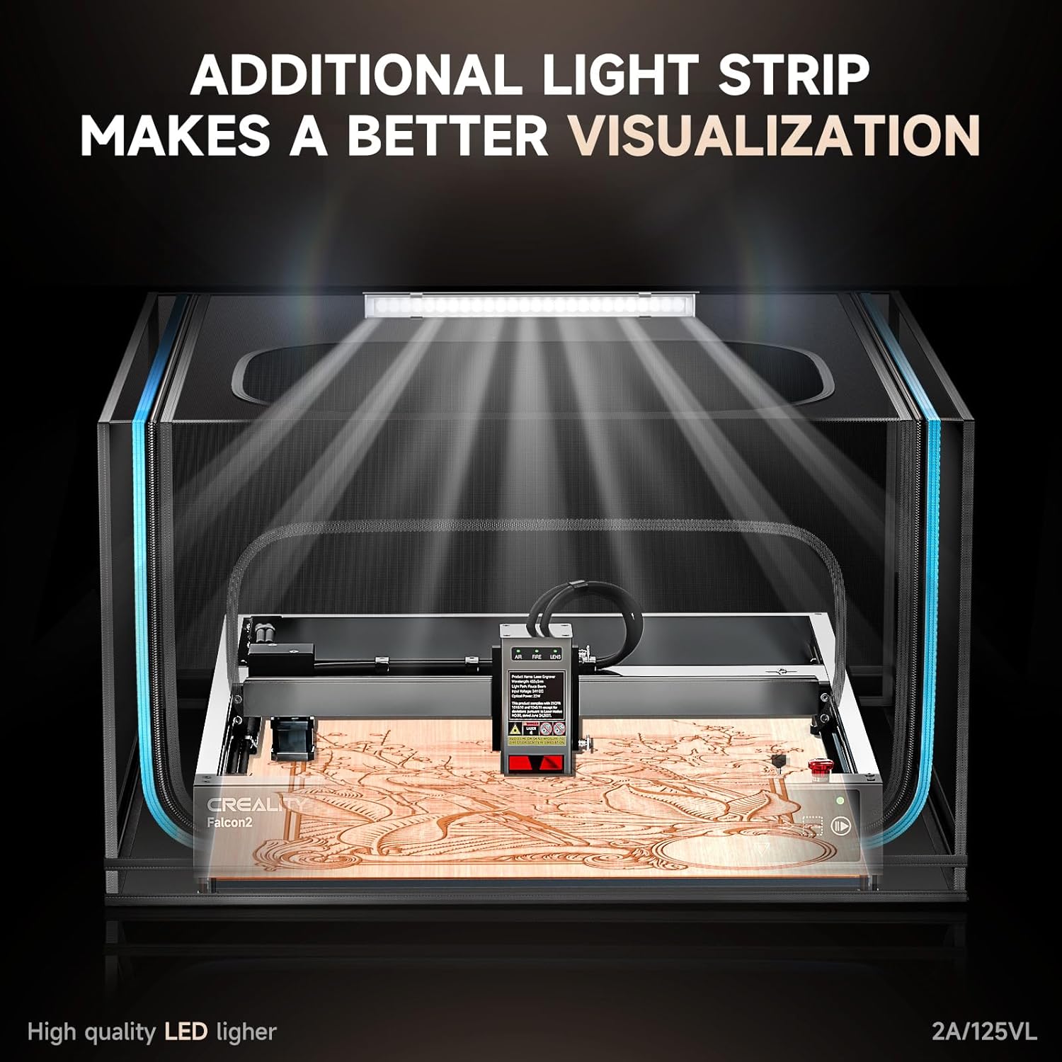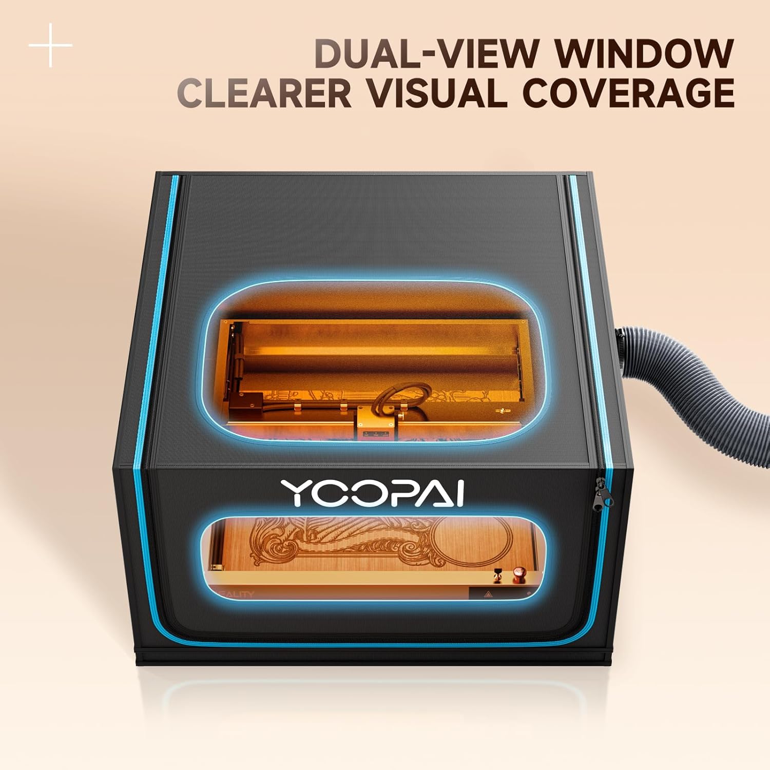 LED light for better observation: The freely adjustable LED light can help you get a better view in dimly lit environments during the engraving process, dual-view window is made of double-layer dark PVC material to reduce the blue light generated by laser engraving