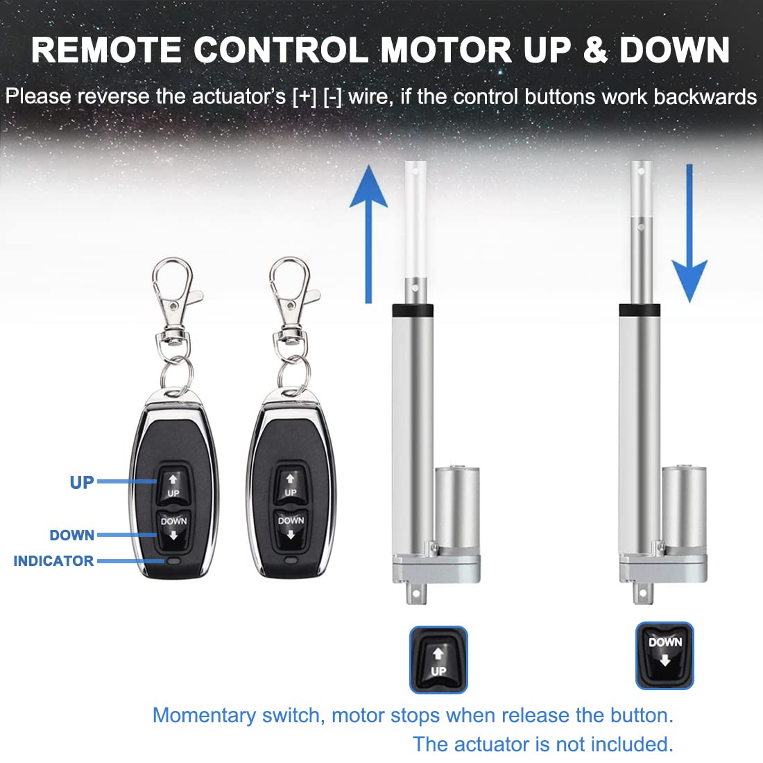 Linear Actuator Controller DC Motor 12V Momentary Switch Forward/Reverse with 2 PC Wireless Remote Control DPDT Relay for Motors