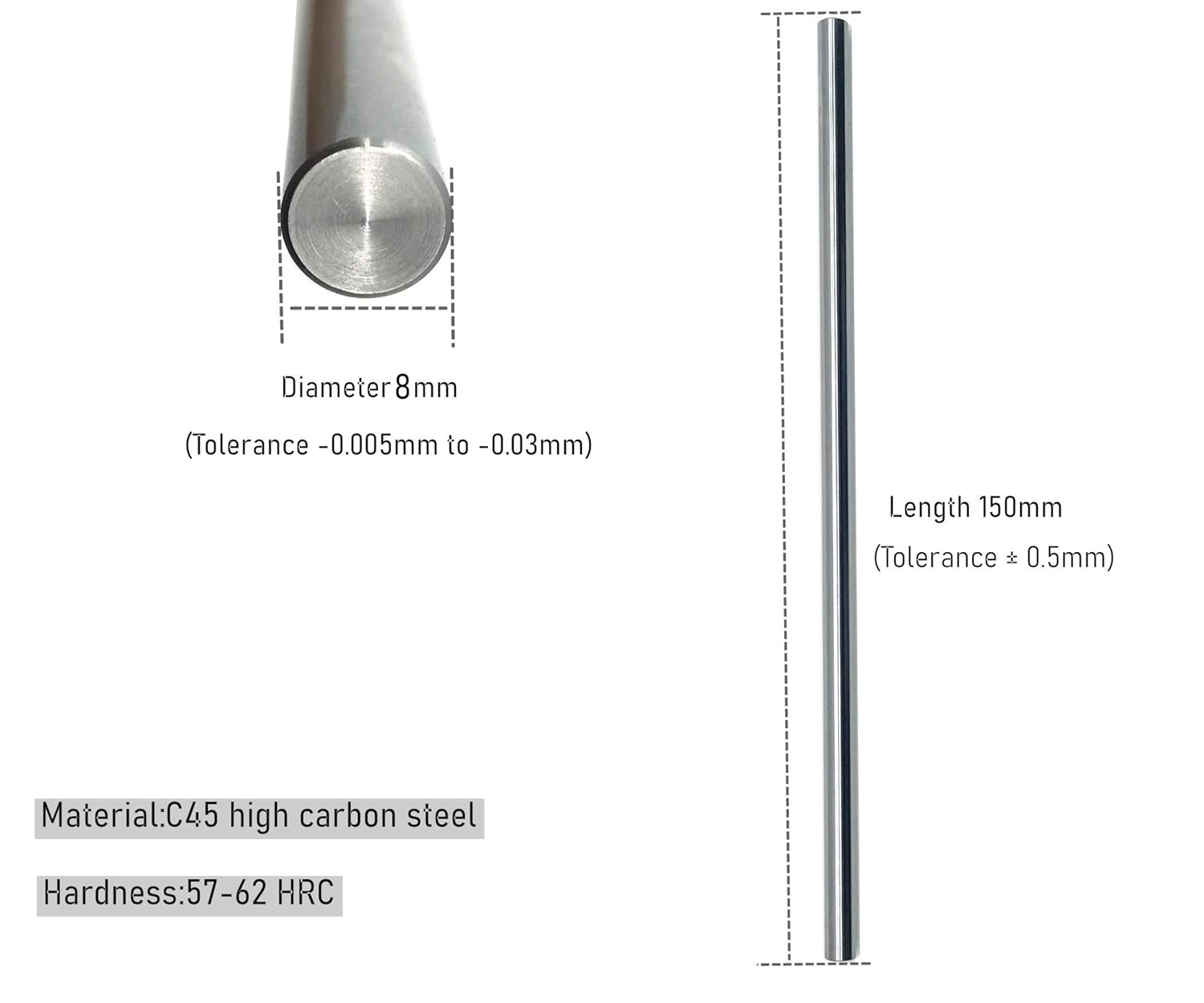 HIGH ACCURACY: Diameter 8mm, tolerance -0.005mm to -0.03mm ( 7.995mm – 7.97mm), length 150mm, tolerance ± 0.5mm ( 149.5mm – 150.5mm ).