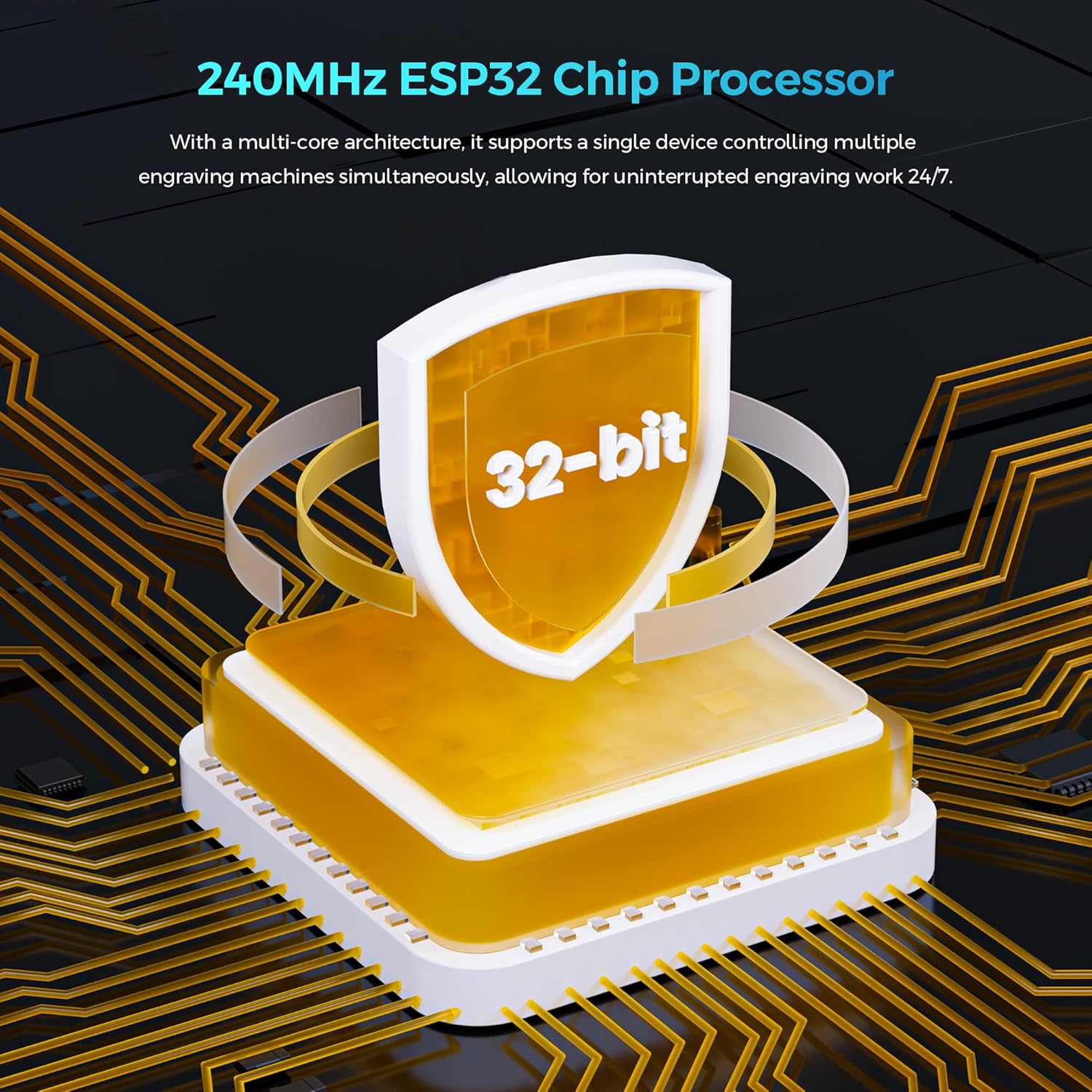 【High-Performance, Multi-Device Control,Laser Class II】The Longer Ray5 10000mW laser engraver is equipped with a 10W output laser module and the latest 240MHz ESP32 chipset. This high-performance processor features a multi-core architecture, enabling a single device to control multiple engraving machines simultaneously. It offers faster response speed, enhanced compatibility, and lower energy consumption compared to machines using 8-bit chipsets.