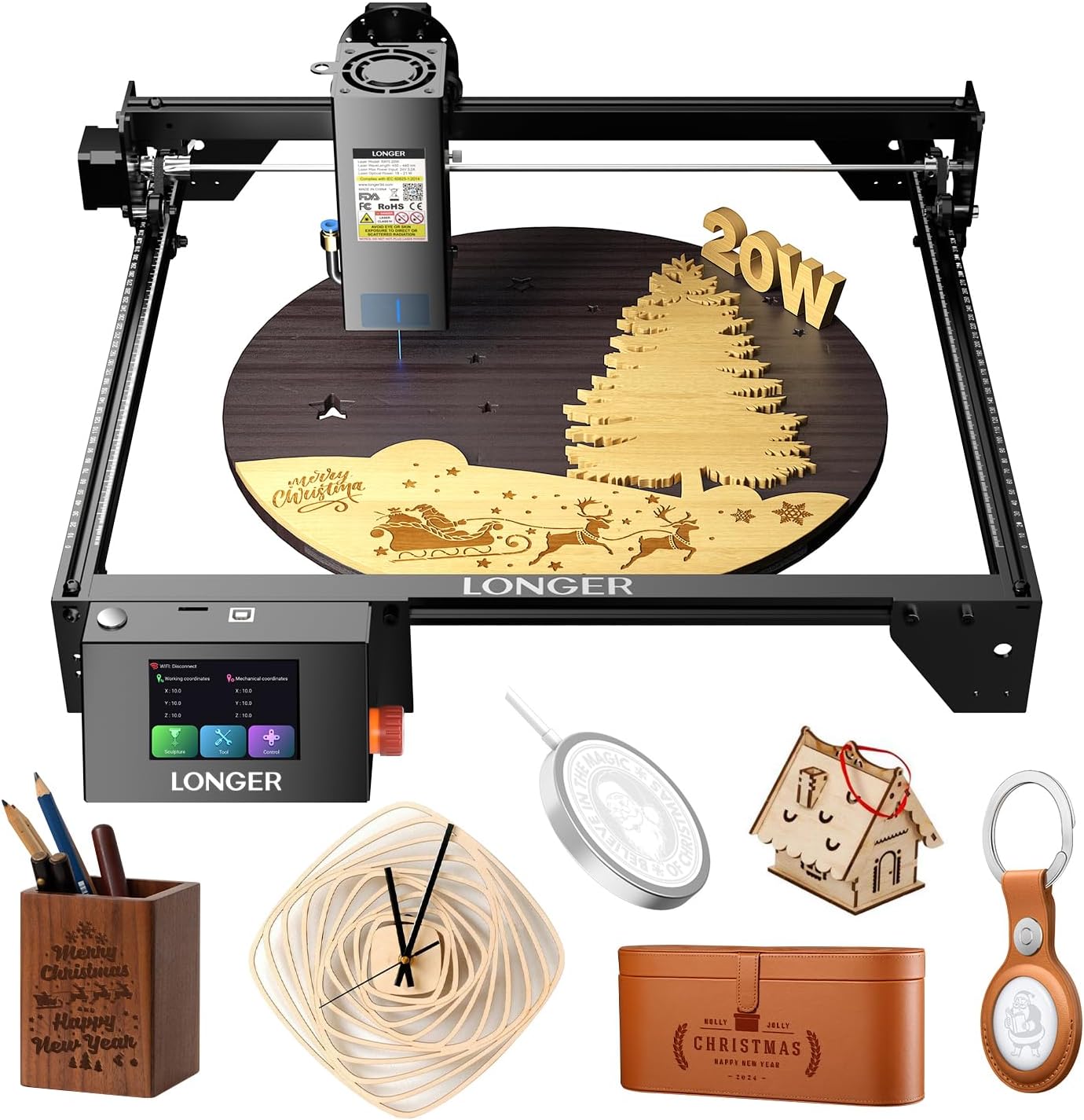 Convenient Operation and 4 Connection Modes: The machine features a built-in 3.5-inch color touch screen, allowing customers to conveniently monitor engraving progress, adjust engraving speed, and execute other operations. It supports 4 common connection modes including USB, TF card, WiFi, and APP, and is compatible with professional engraving software like LaserGRBL and LightBurn.