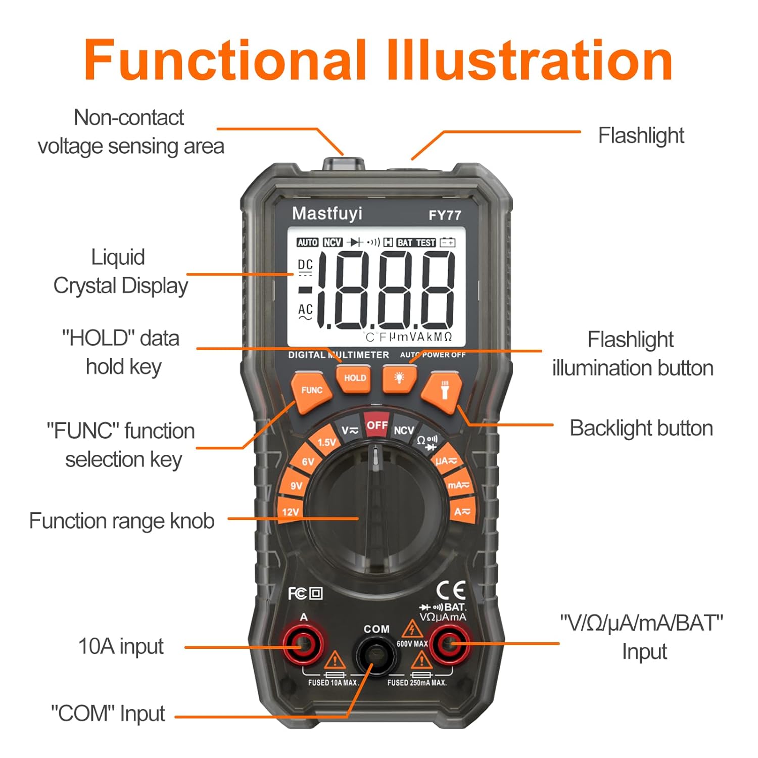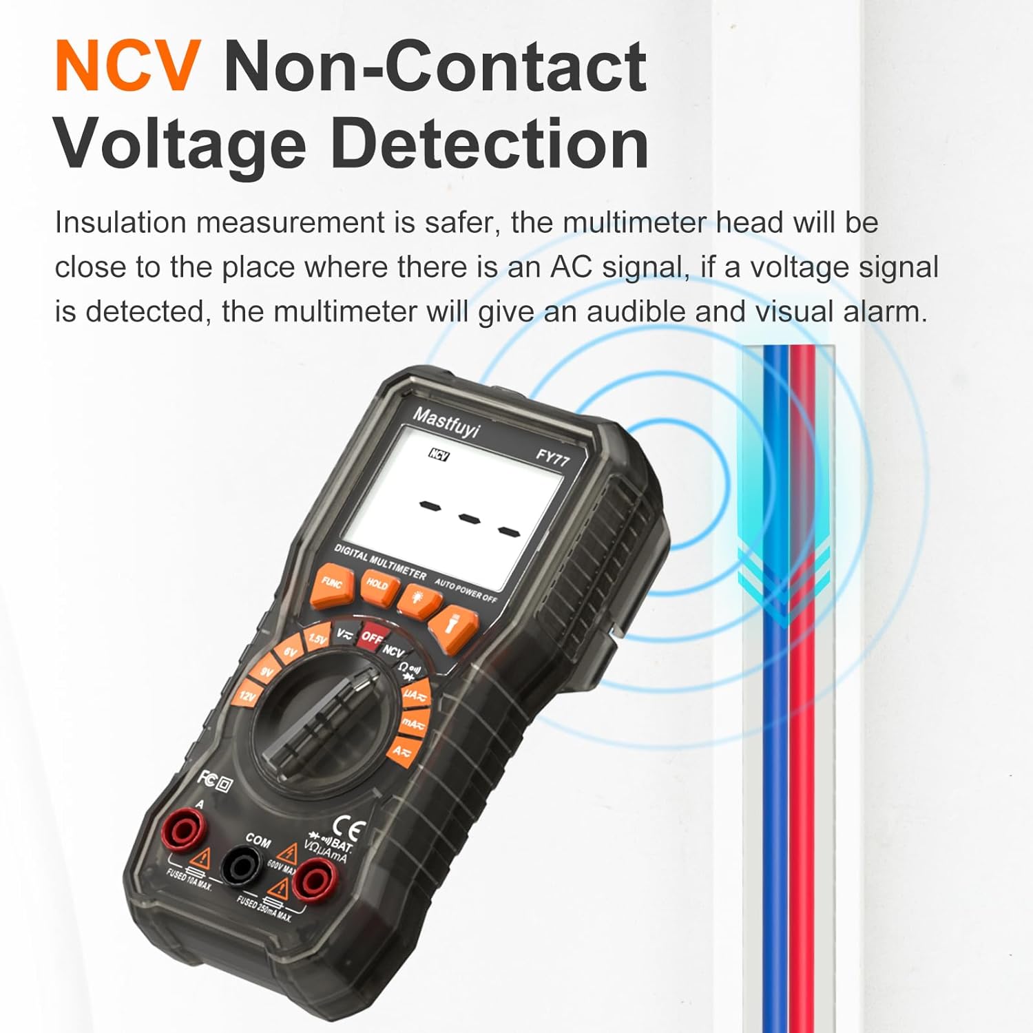 ▲【Large Backlit Display】 : With 2.2 inch large backlight display and flashlight, convenient for you to work in dark places; Rubber cover (removable) protects multimeter from drops, wear-resistant, anti-static and non-slip. The screen backlight will automatically turn off 30 seconds after it is turned on