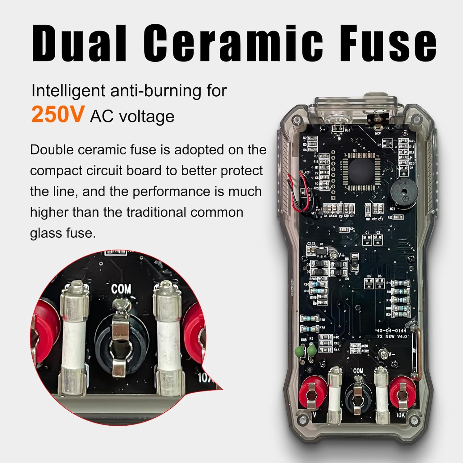 ▲【Overload Protection】 : There are two fuses on the internal circuit board of the instrument,two PTC thermistor protection circuits to prevent circuit damage due to wrong measurement