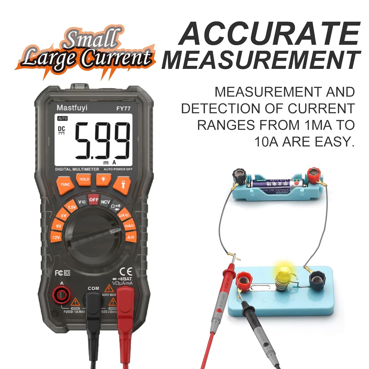 ▲【Multi-Functional】 : With precision measurement of battery voltage, AC / DC voltage up to 600 V, AC / DC current up to 200 mA / 10 A, Resistance to 20 MΩ, Continuity, Resistance, Diode. It is a perfect device for solving electrical problems in a wide range of industrial and household devices such as electronic equipment, household appliances, power supplies and wiring systems