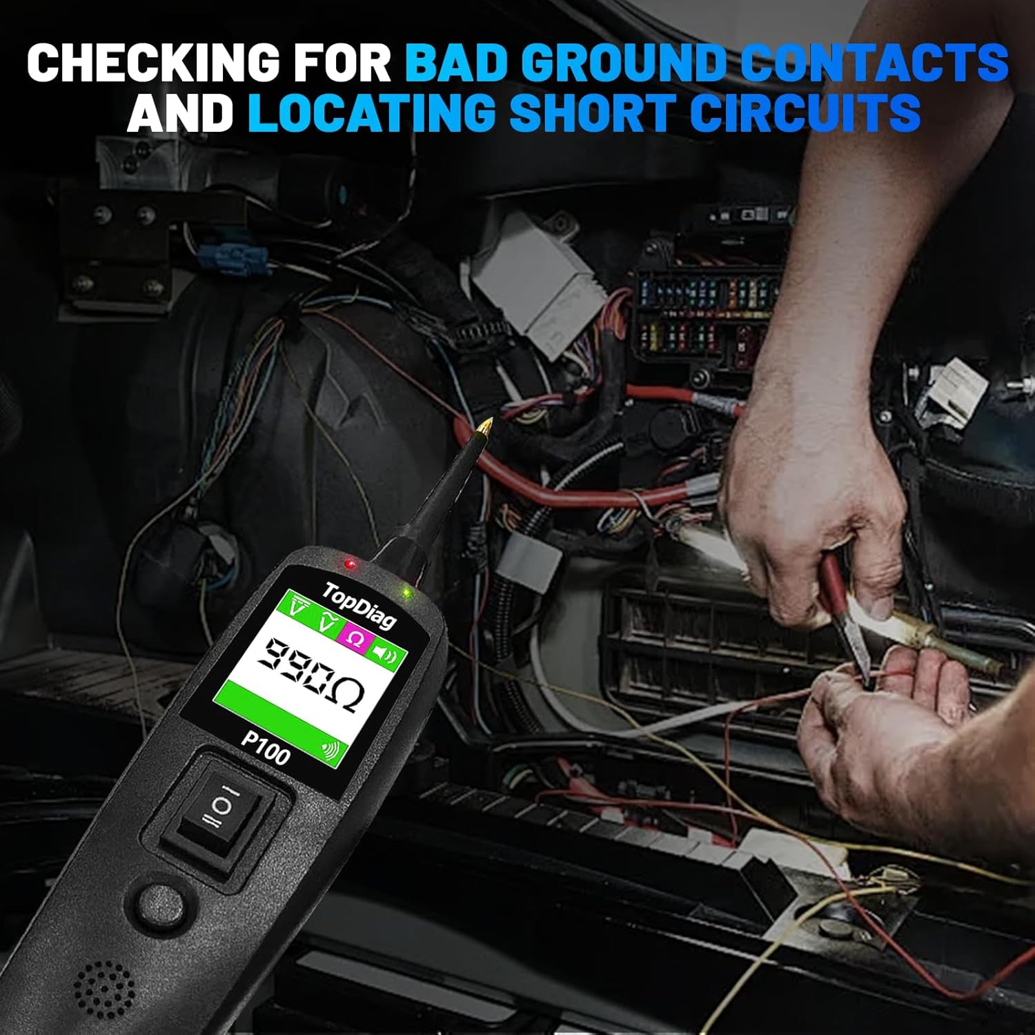 【OVERLOAD PROTECTION】Topdiag Electrical System Probe Tester has a built-in short circuit protection. When overloaded, built-in internal short circuit will automatically trip to ensure the safety of users and prolong the service life of the tester. Checking for Bad Ground Contacts and Locating Short Circuits.