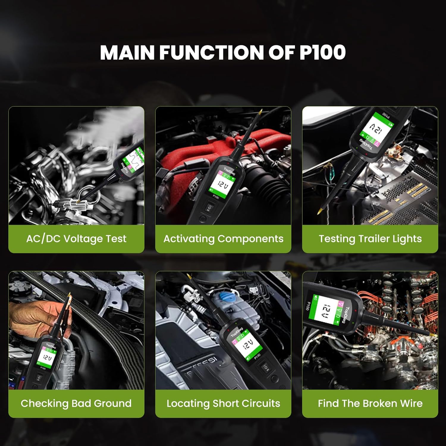 P100 Circuit Tester: P100 circuit tester is one of the most versatile automotive electrical tools available on the market. It is designed to test various aspects of your vehicle’s electrical system, including AC/DC voltage, resistance, continuity, polarity, and connections. With this probe tester, vehicle owners can easily diagnose electrical issues on their own without the need for professional assistance.
