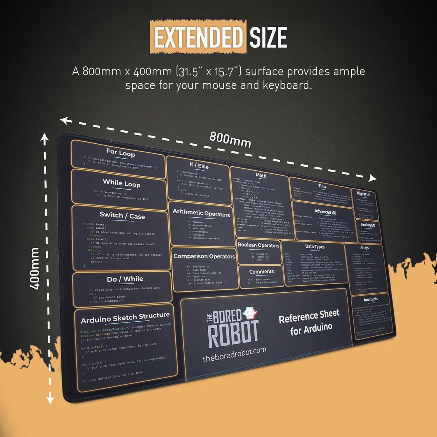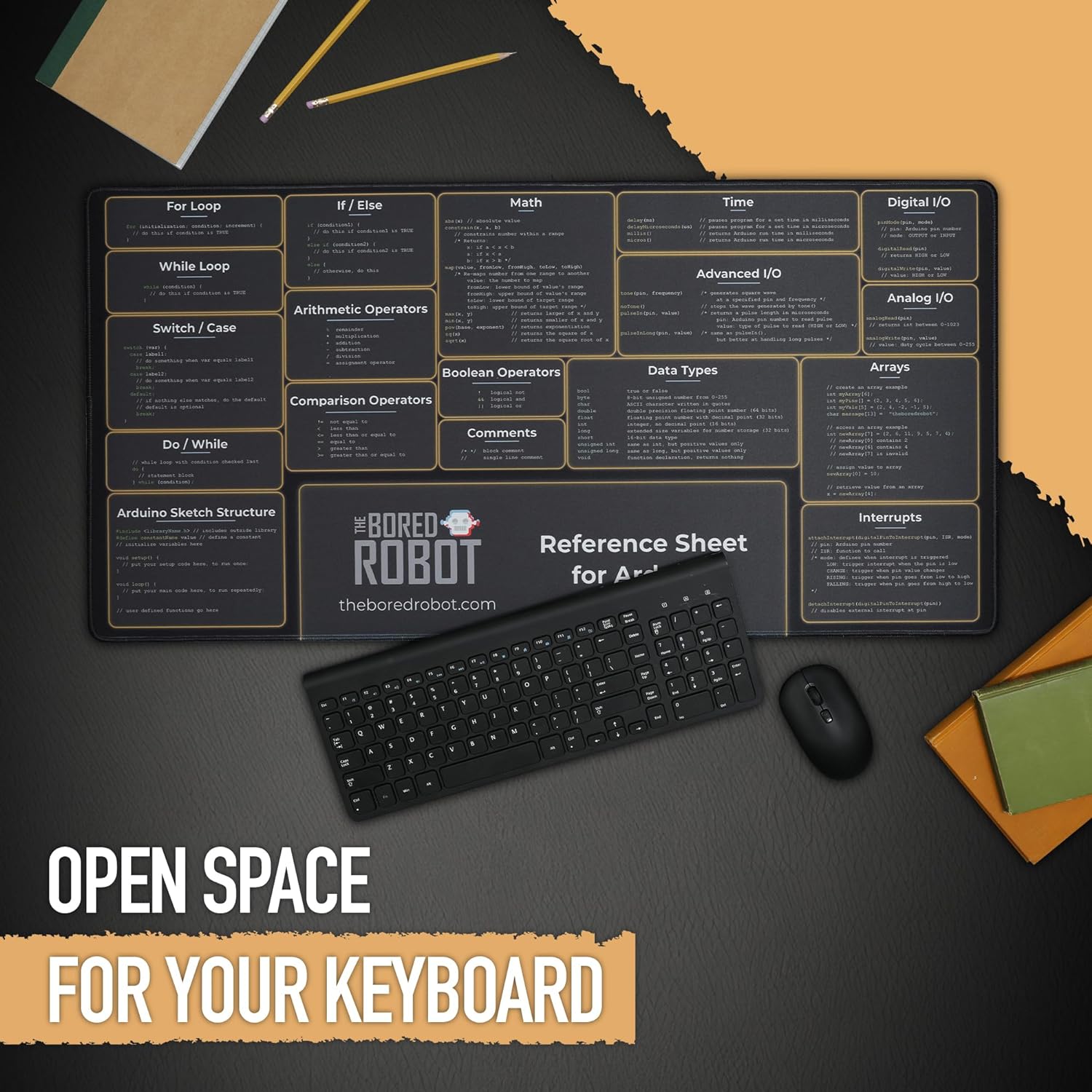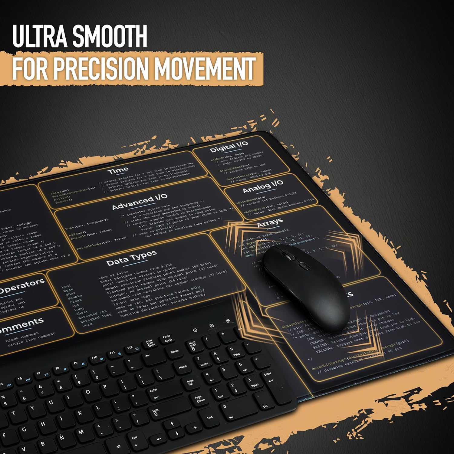 CODING SYNTAX AT YOUR FINGERTIPS: Experience the convenience of Arduino Programming references in plain view, on your mouse and keyboard pad, without the need of having to refer to online resources