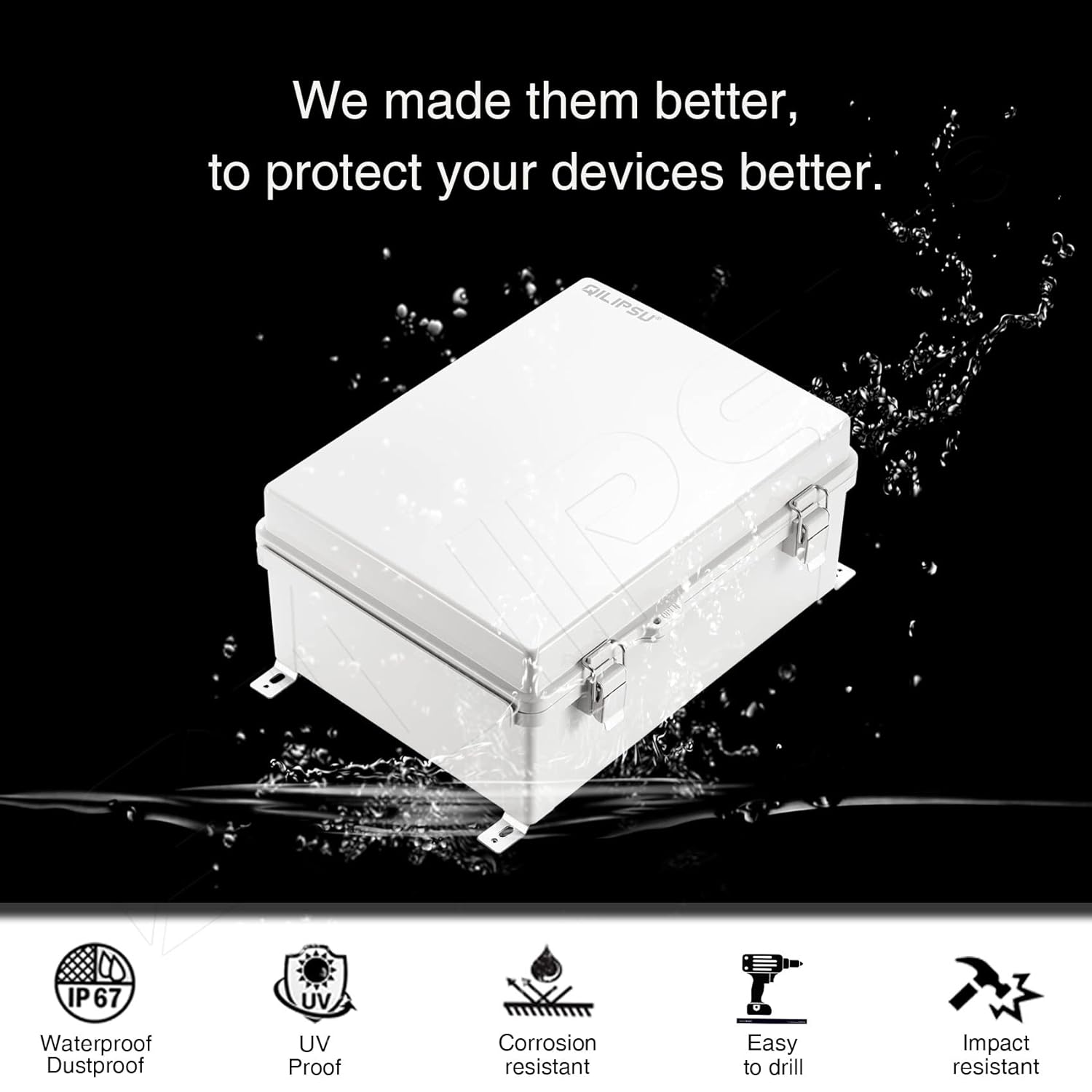 【IP67 RATED WATERPROOF】- QILIPSU electrical enclosure boxes feature an IP67 waterproof and weatherproof design, they offer superior protection against water, rain, dust, snow, oil, UV rays, and other environmental elements. The robust design of the outdoor electrical box makes it ideal for use in both indoor and outdoor settings, ensuring that your electrical equipment is protected from harsh conditions.