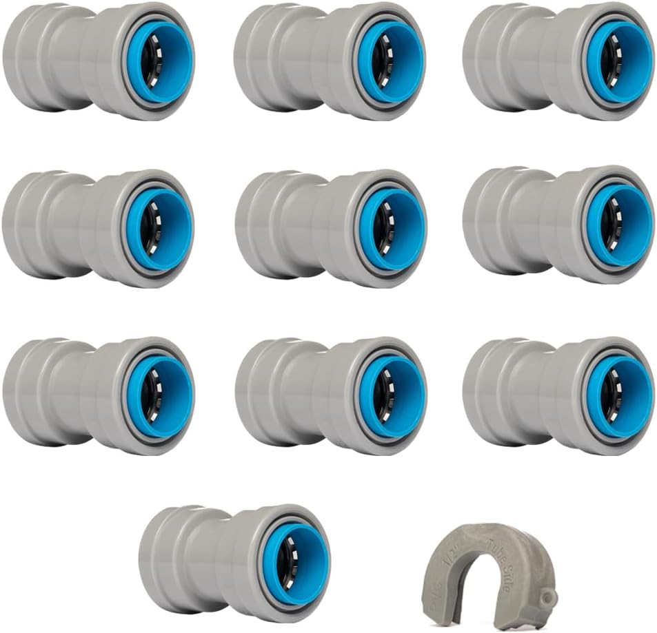 QuickFitting 1/2 inch Conduit Coupling | Push Install PVC Electrical Conduit Fitting | for Rigid Sch 40 and Sch 80 PVC Conduit | 10-Pack Liquid Tight Conduit Connectors