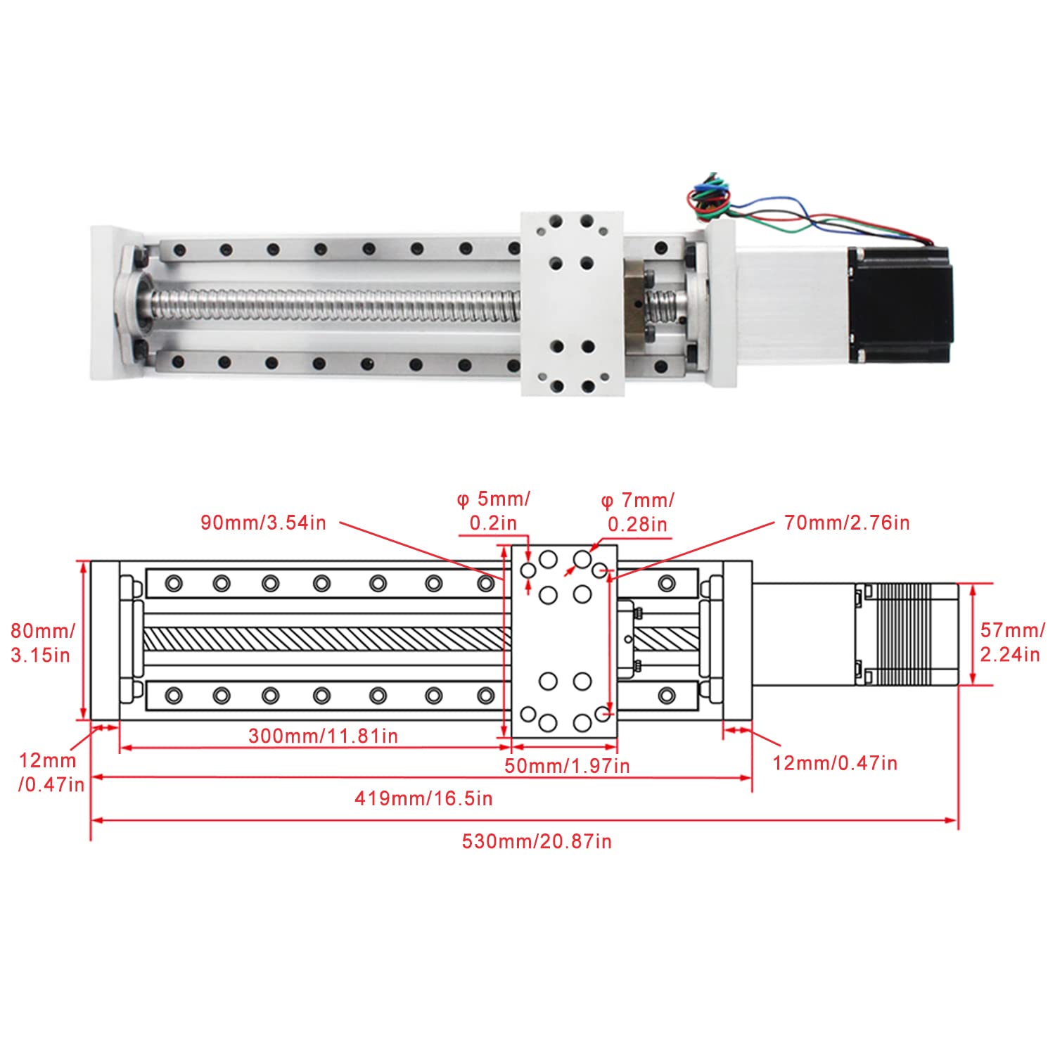 Material: Aluminum Alloy; Effective Stroke: 300mm; Horizontally loadable: 80kg; Vertical carrying: 20kg; Width: 80mm.