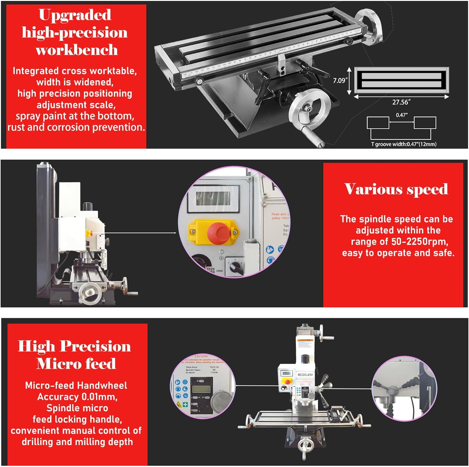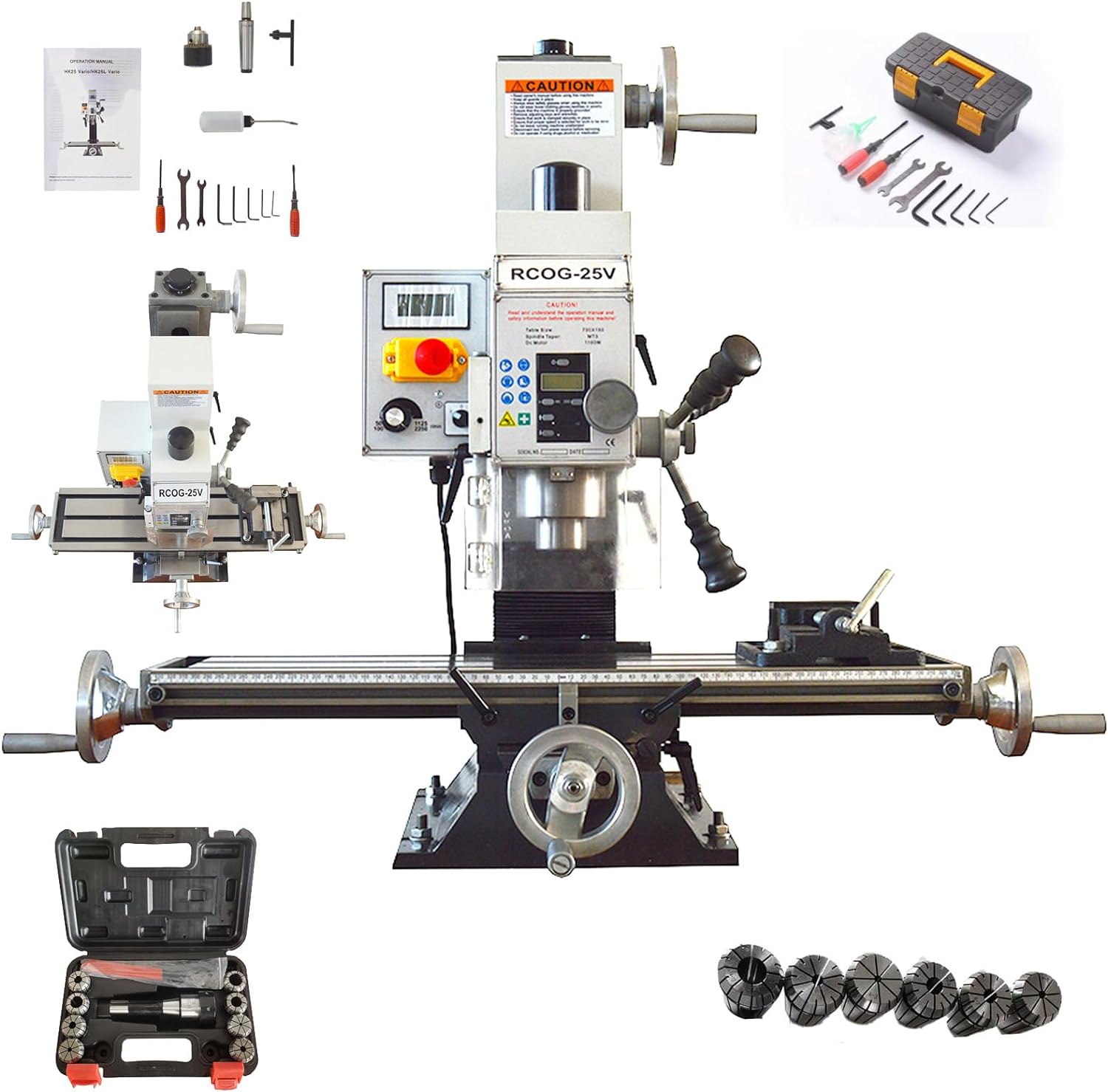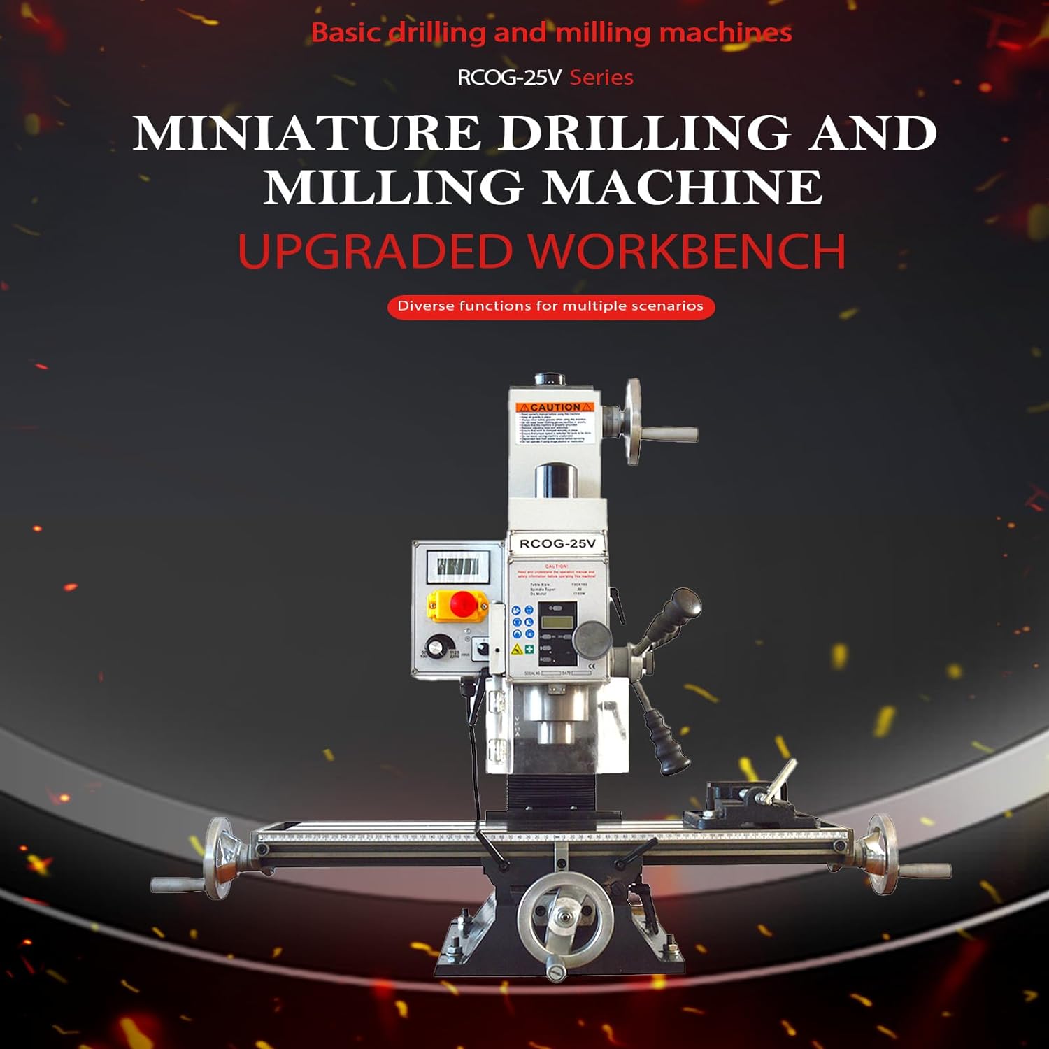 RCOG-25V 1100W Mini Precision Drilling and Milling Machine Benchtop Drilling and Milling Machine with R8 Spindle Taper and Brushless Motor 110V