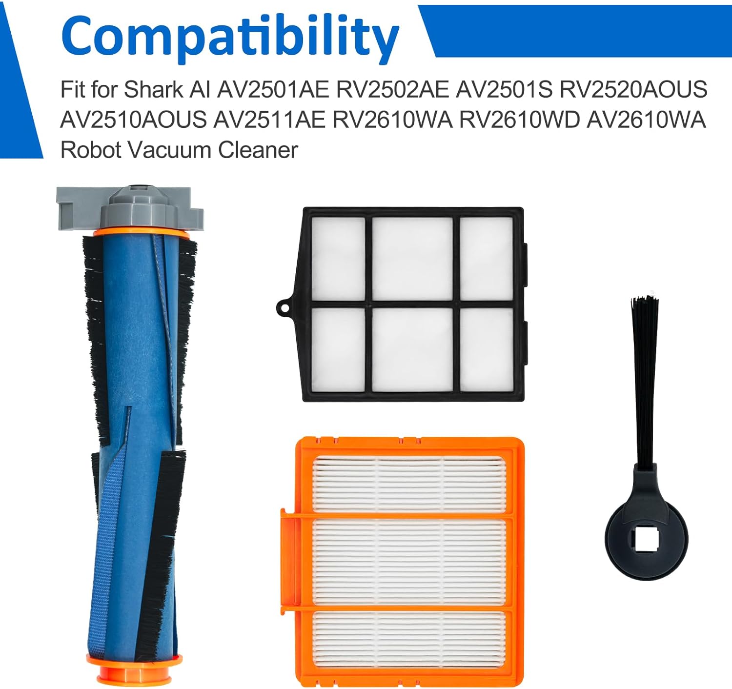 High Compatibility Accessories for Shark Robot Vacuum AV2501s: Replacement parts accessories compatible with Shark AI AV2501S AV2501AE RV2502AE RV2520AOUS AV2510AOUS AV2511AE RV2610WA AV2610WA series robot vacuum. This set works as great as the original ones, with precision fit and easy installation.