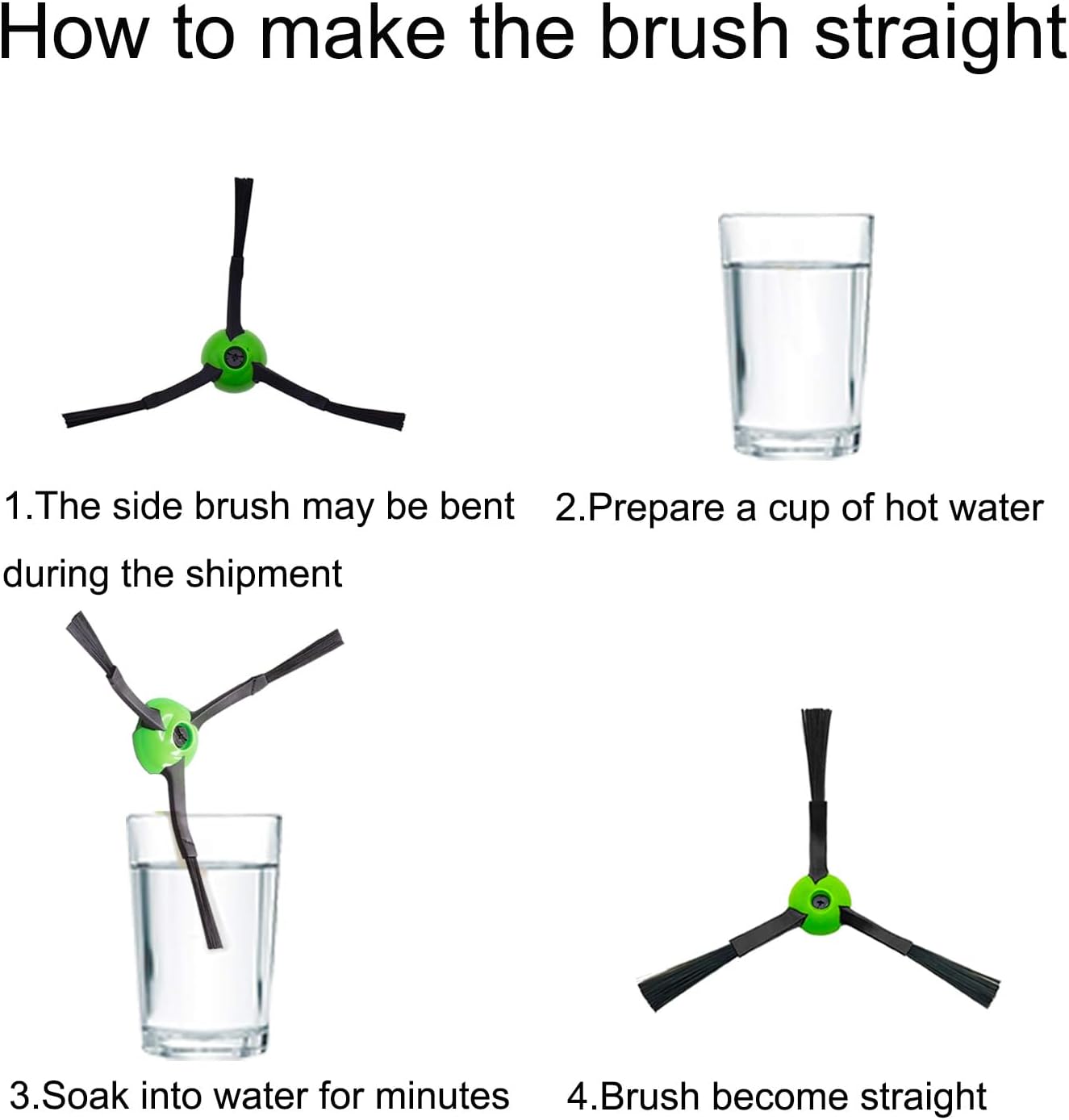 The side brush may bend during the transportation, if you find it is bent when you open the accessories package, please use hot water to solve this issue, great thanks!