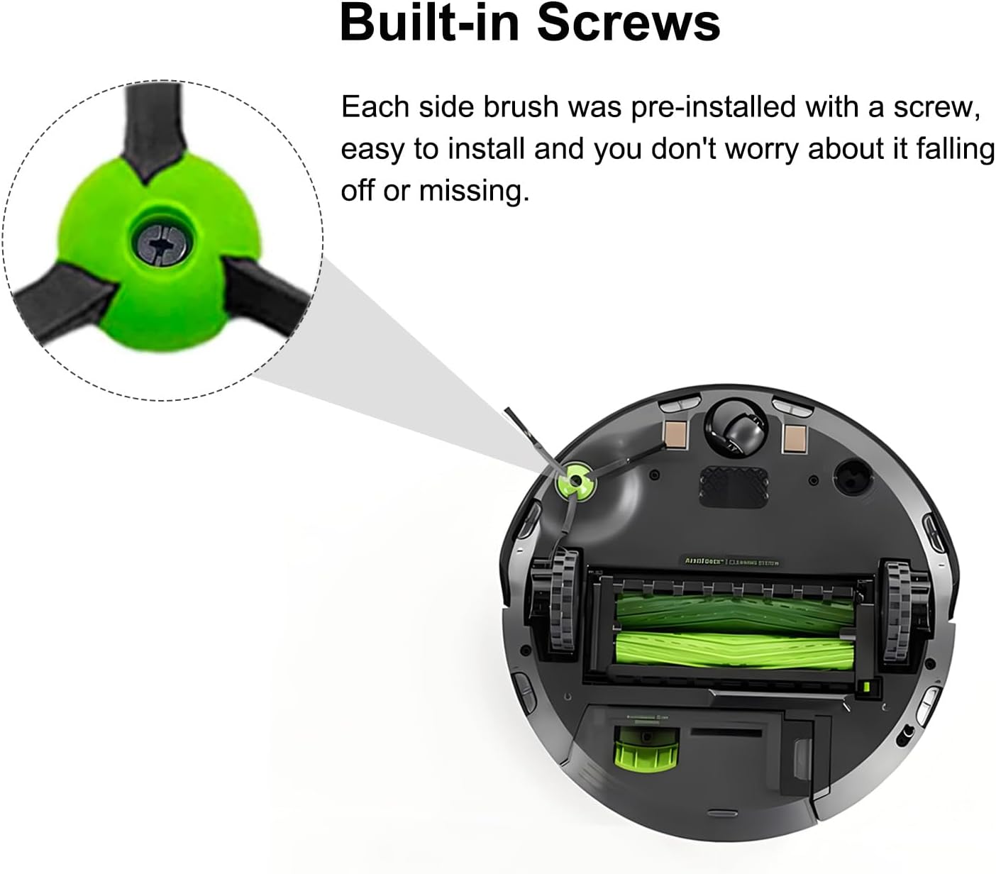 Compatibility: These black side brushes fits for iRobot Roomba all i j e Series models, Roomba j5 j5+ j6 j6+ j7 j7+ j8 j8+ j9 j9+ i3 i4 i5 i5+ i6 i6+ i7 i7+ i8 i8+ e5 e6 Robotic Vacuum Cleaner.
