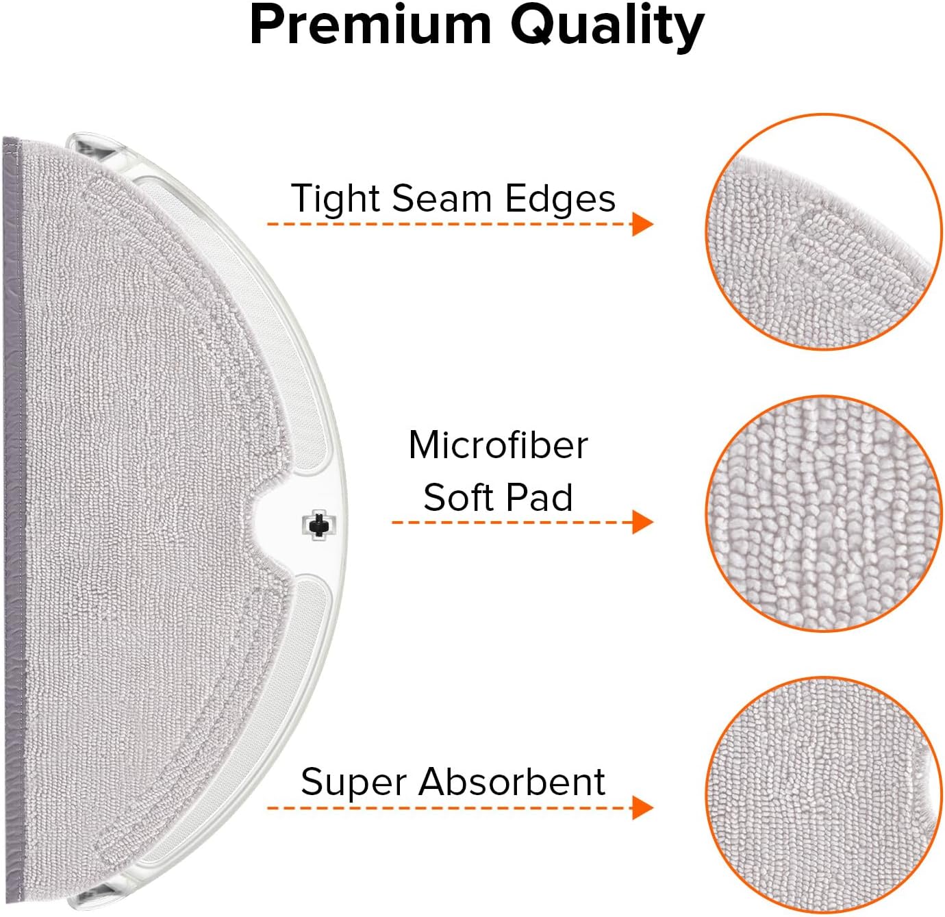 High Quality: Crafted from ultra-fine microfiber, Roborock mop cloths effortlessly remove various types of dirt, including fine dust, kitchen grease, and pet hair. Suitable for sealed floors such as tiles, hardwood, and stone.