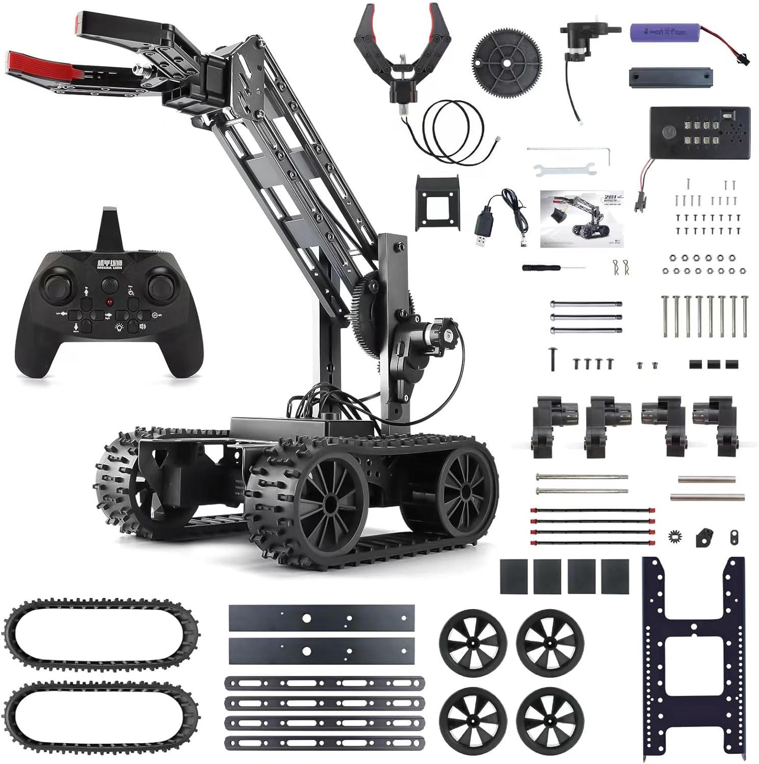 [Multiple Functions]: This robotic arm kits can move at multiple angles while the robotic arm can rise and fall freely,and has the functions of grabbing something and programming,It also has simulation sound effects;