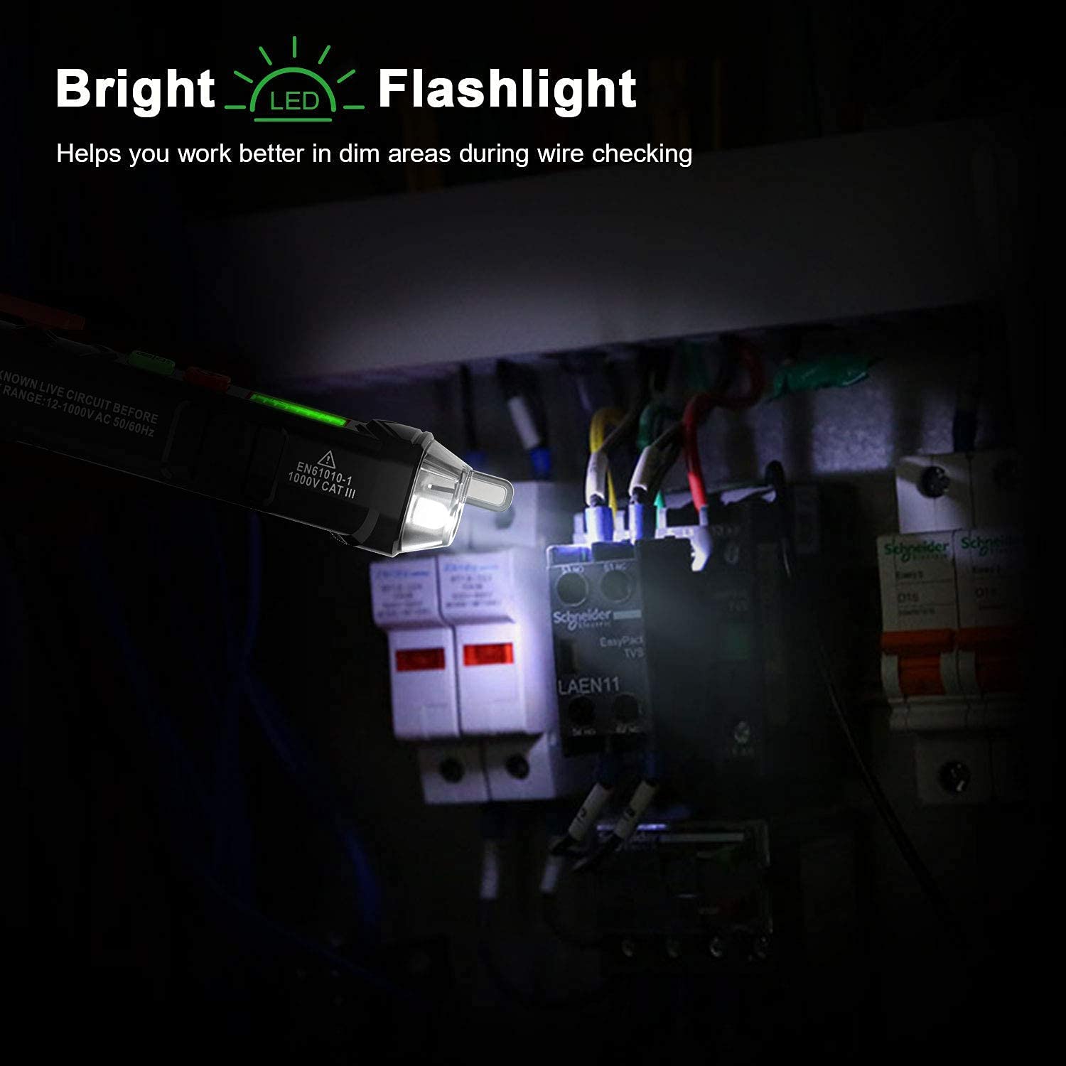 DUAL RANGE: Detects standard and low voltage (12-1000V AC / 48-1000V AC) for more sensitive and flexible measurements. Press the S button to adjust sensitivity and adapt low range for doorbells, thermostats, irrigation wiring etc.; The NCV sensor automatically recognizes the voltage and displays it on the bar graph.